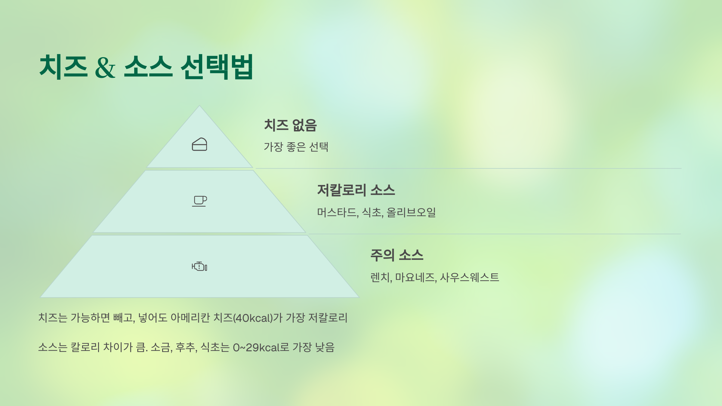 다이어트할 땐 치즈와 소스 선택이 정말 중요해요!
