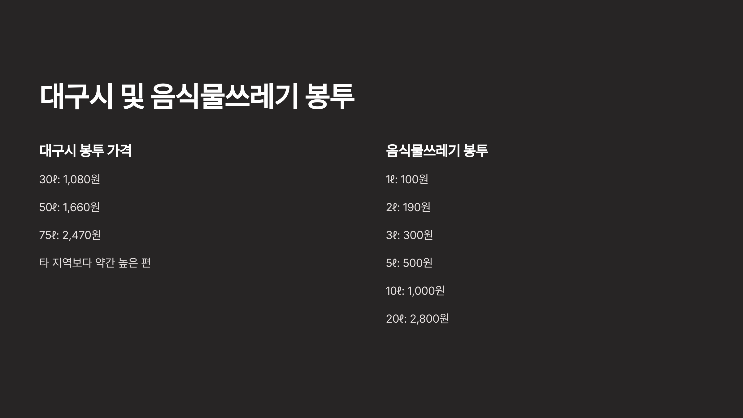 대구광역시 종량제 봉투 가격 🏢