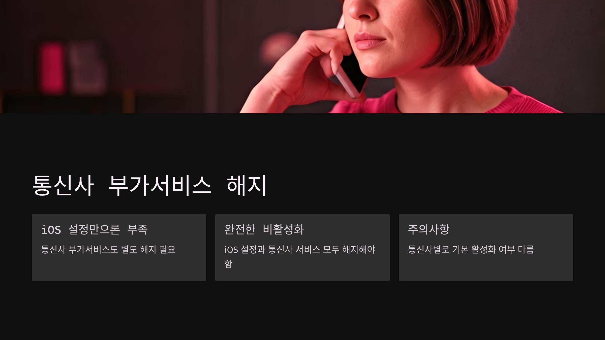 즉, 완전한 비활성화를 위해서는 꼭 통신사 부가서비스를 해지해야 해요!