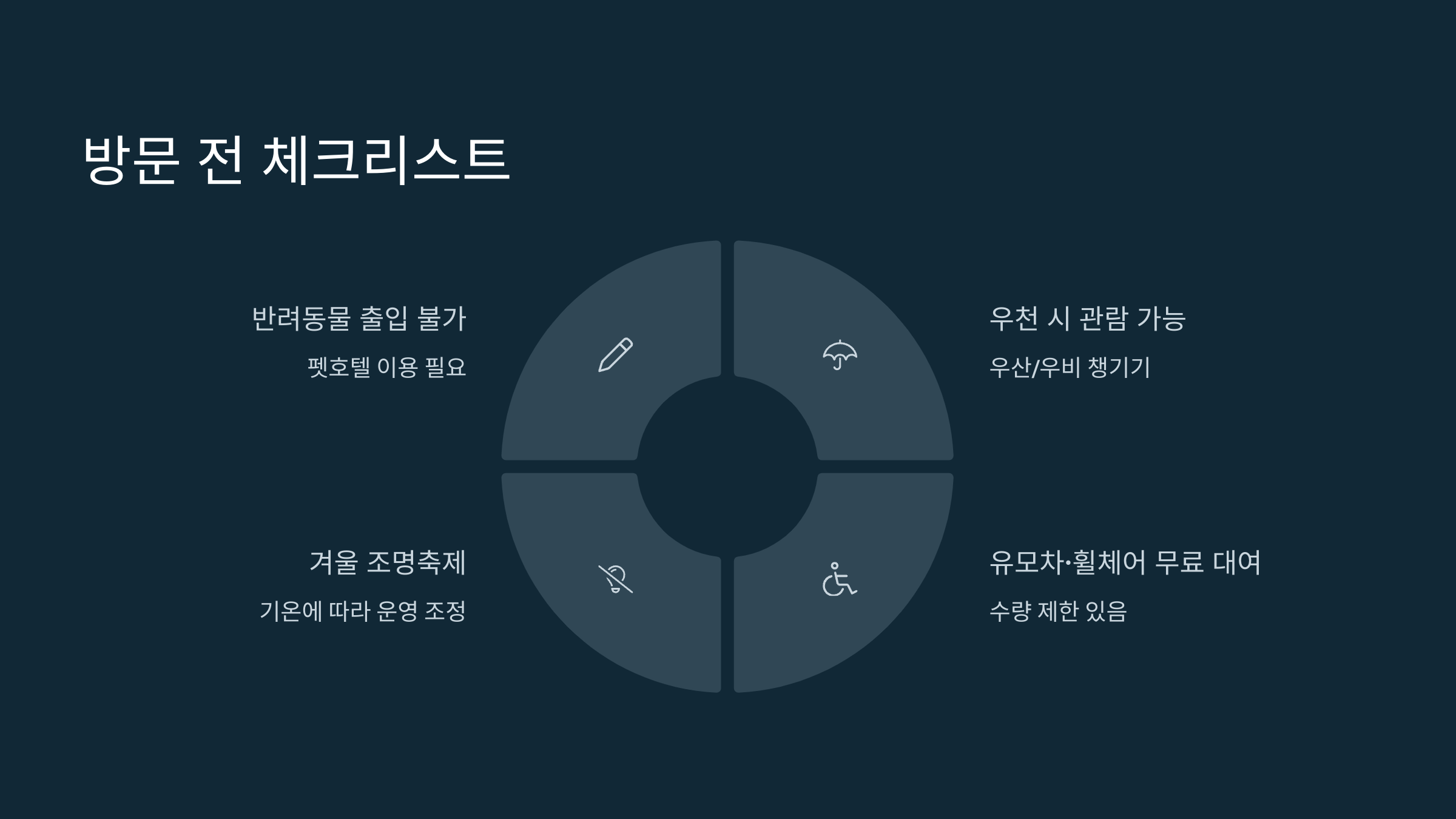 - 6. 유모차/휠체어 대여: 사전 신청 가능하니 공식 홈페이지 참조.