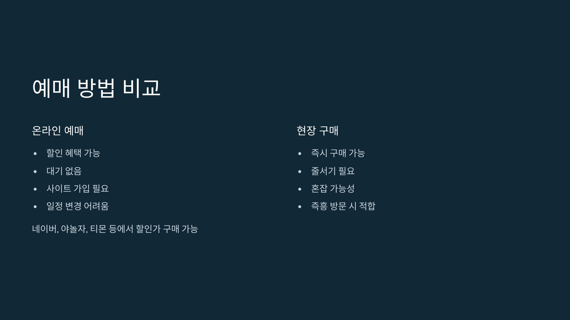 온라인 예매 vs 현장 구매 비교 👀