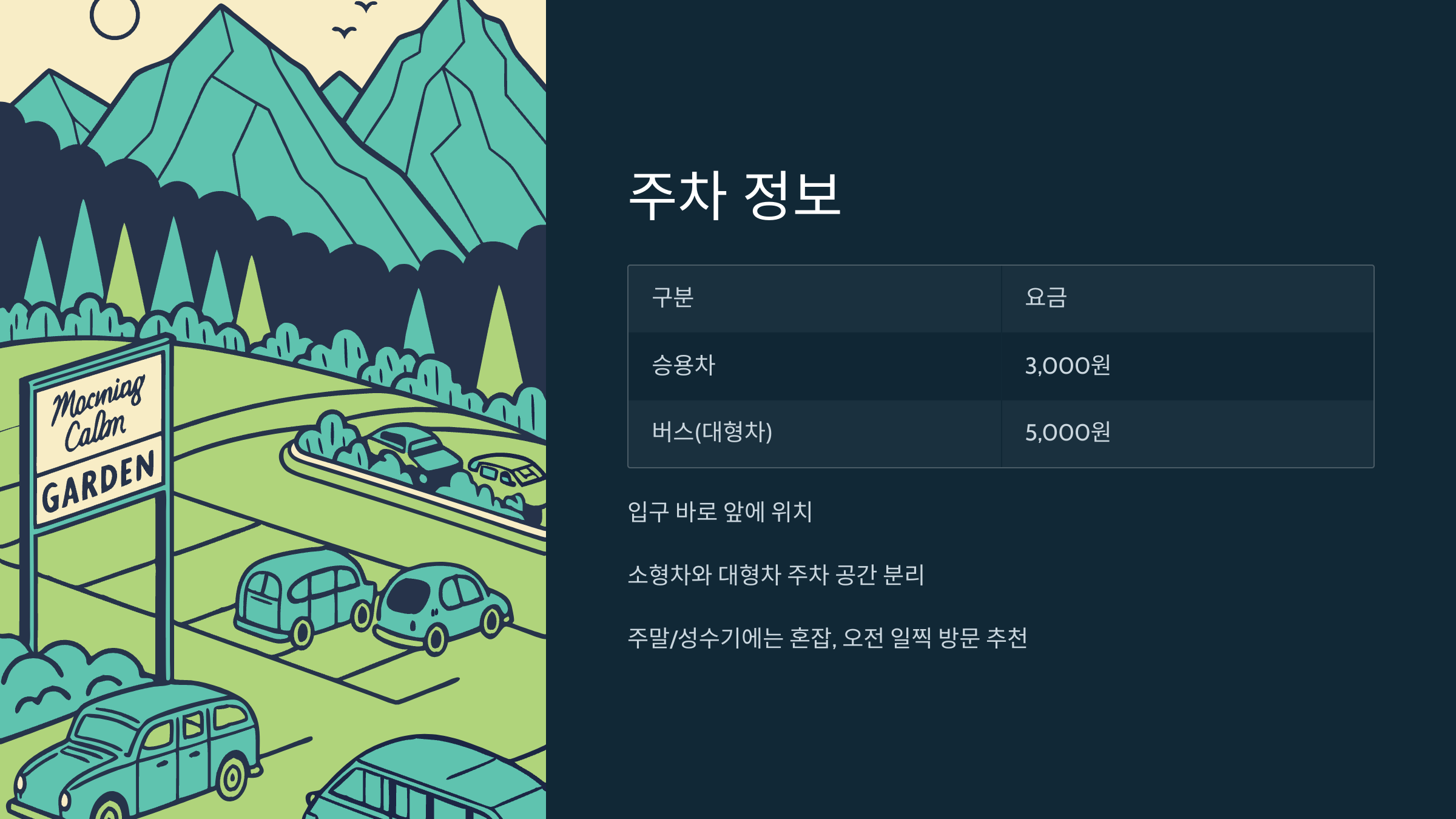 🚗 TIP: 주말이나 성수기에는 방문객이 많아 주차장이 혼잡할 수 있어요.