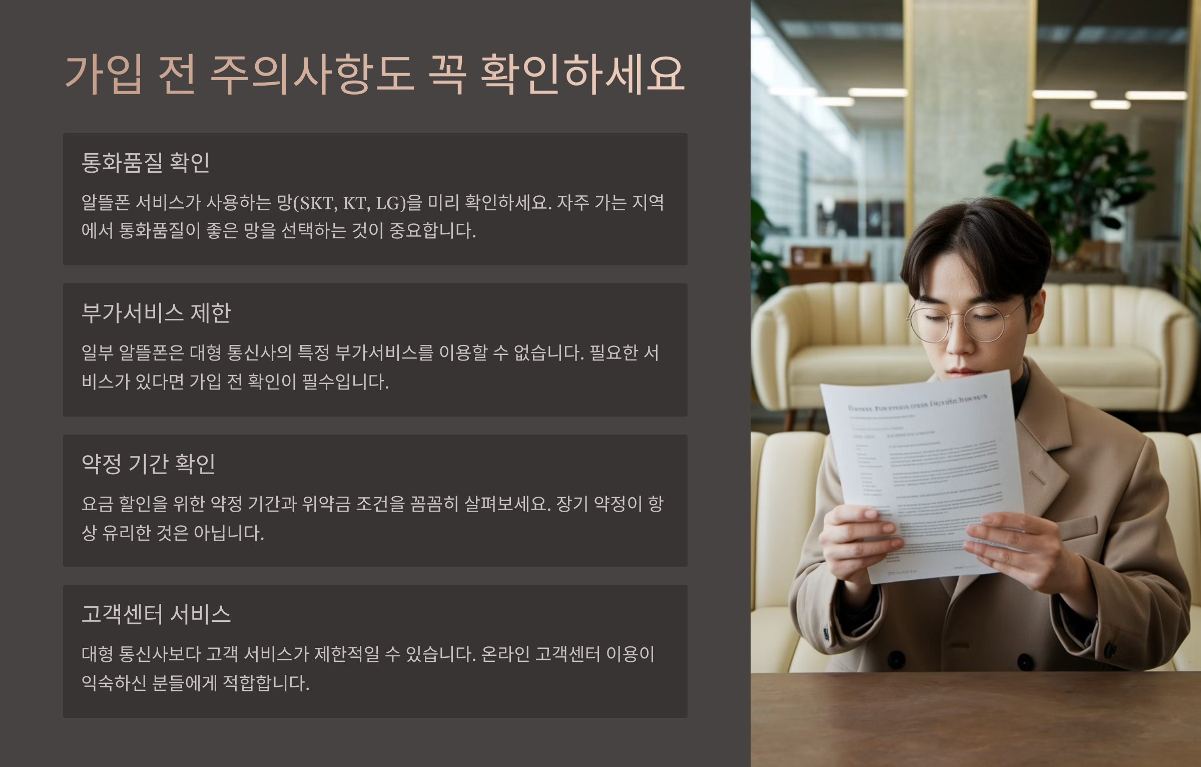 혜택이 많고 요금이 저렴하다고 무조건 가입하면 후회할 수도 있어요.
