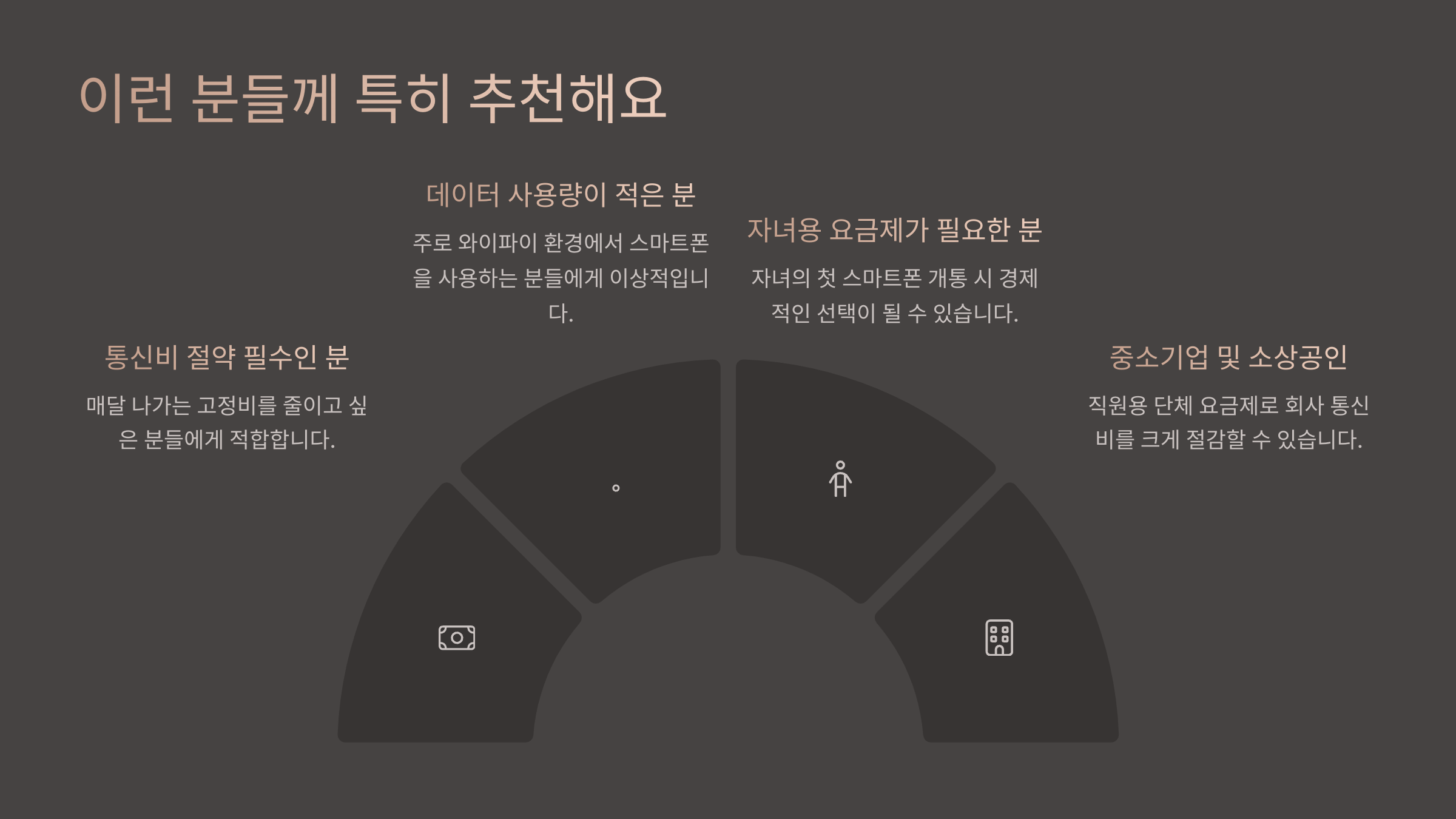 알뜰폰은 사실상 누구에게나 어울리는 요금제지만, 특히 아래와 같은 분들께 적극 추천드려요!