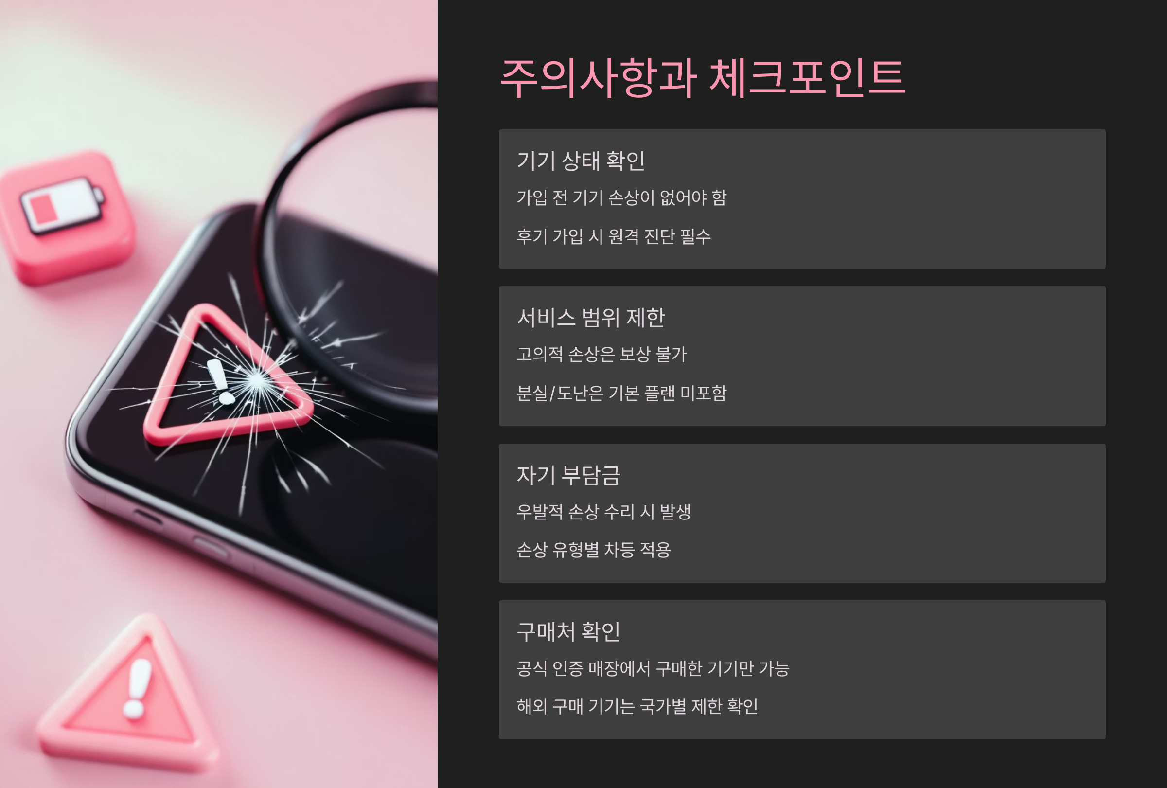 ⚠️ 주의: 중고 기기나 이미 파손된 기기는 가입 불가 또는 보증 제외 대상일 수 있습니다.