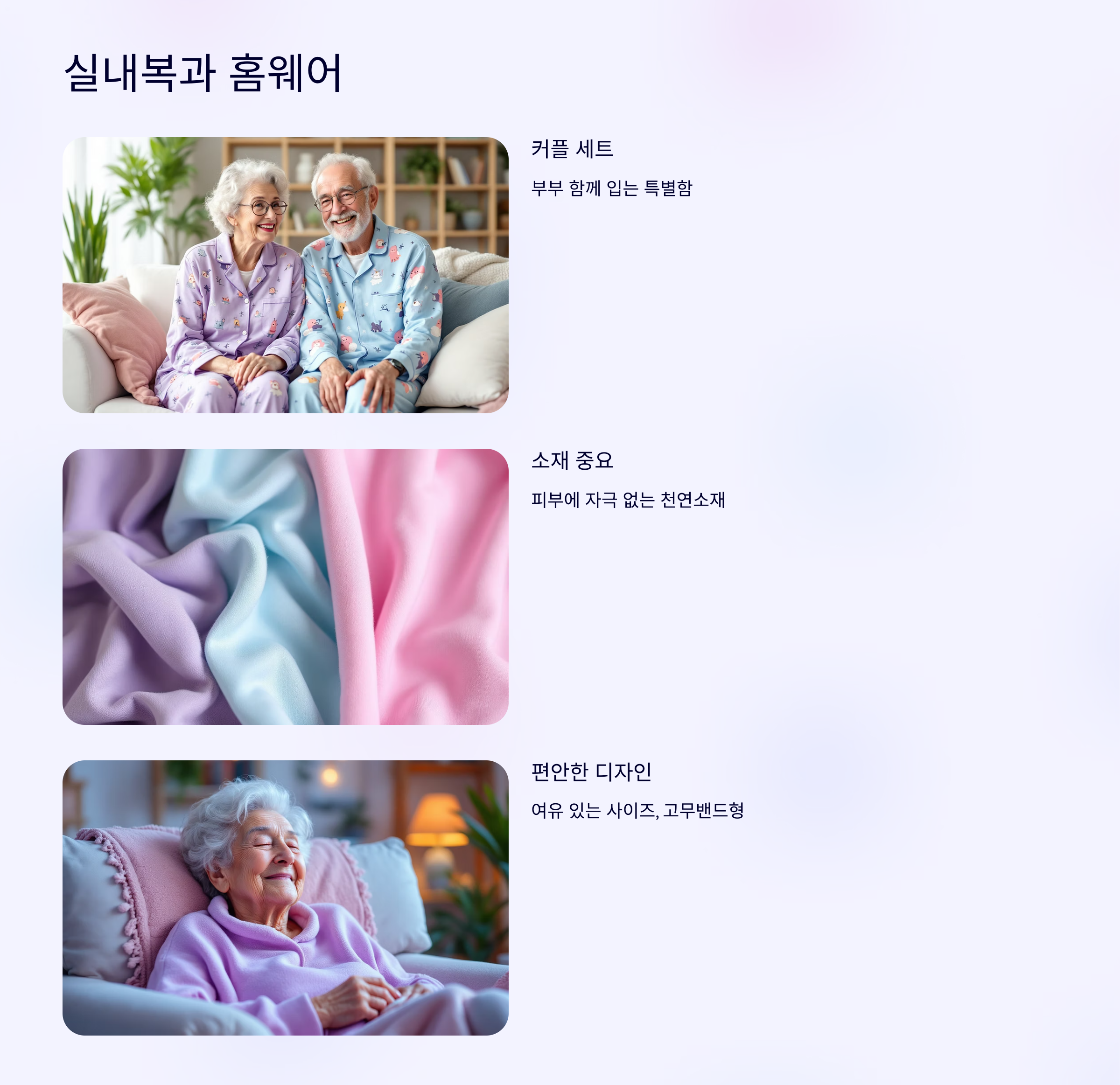 실내복은 실용성과 감성을 동시에 챙길 수 있는 어버이날 선물이에요.