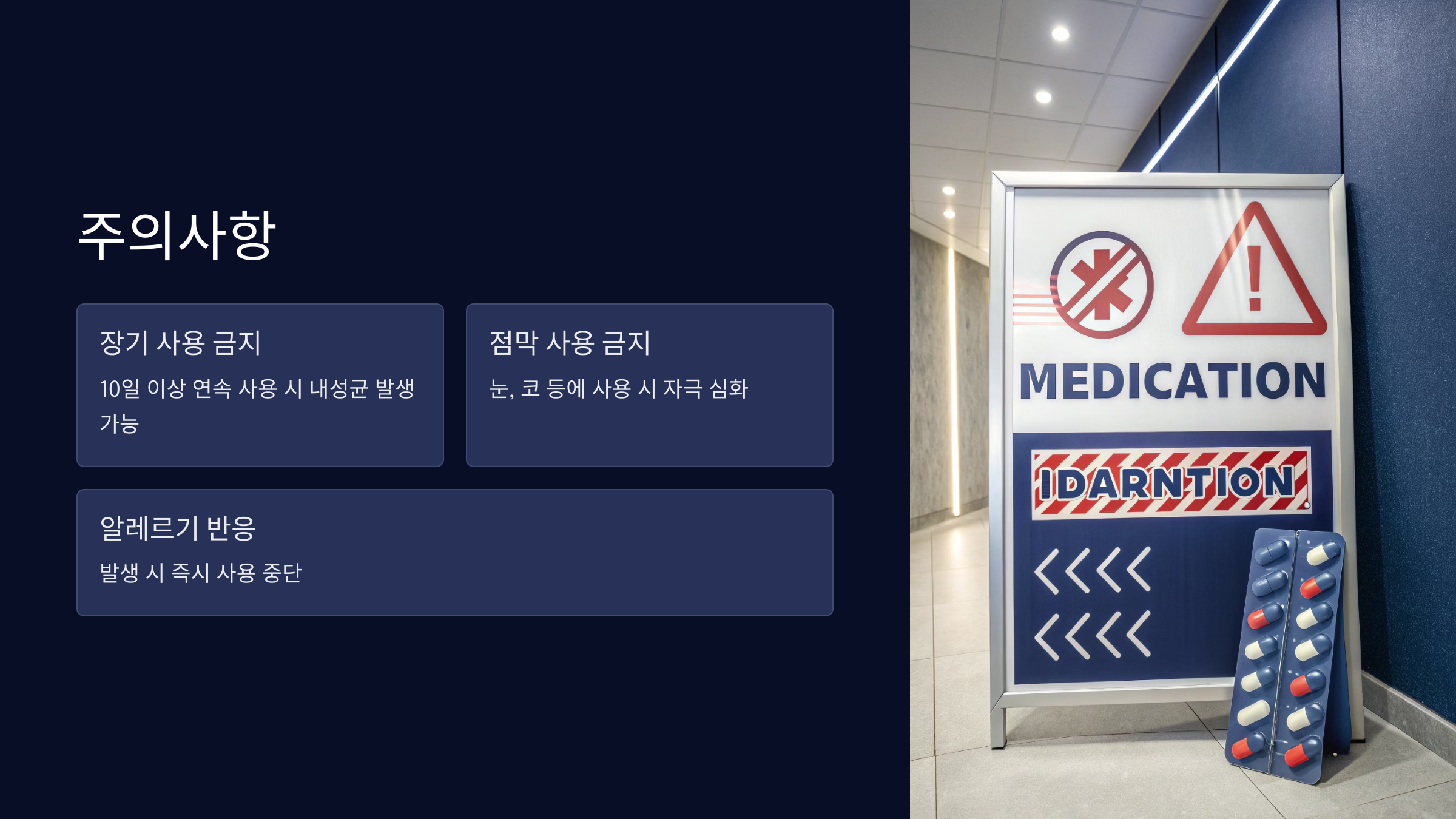 - 10일 이상 연속 사용은 피하세요 – 장기 사용 시 내성균이 생길 수 있어요.