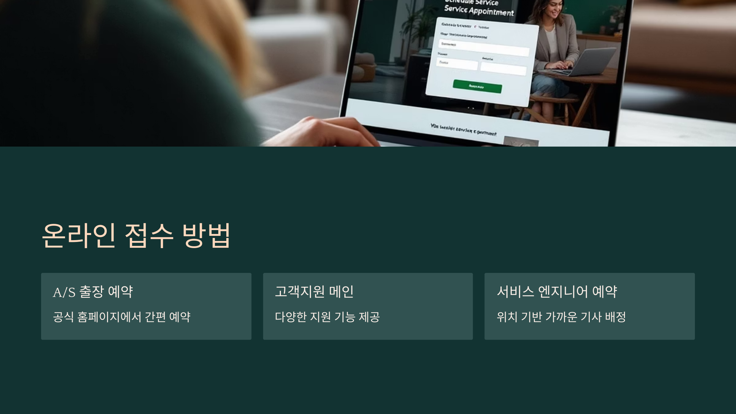 전화 상담 외에도, 온라인을 통해 A/S 접수나 제품 문의가 가능하므로 주말이나 공휴일에는 이 방법을 활용해 보세요.