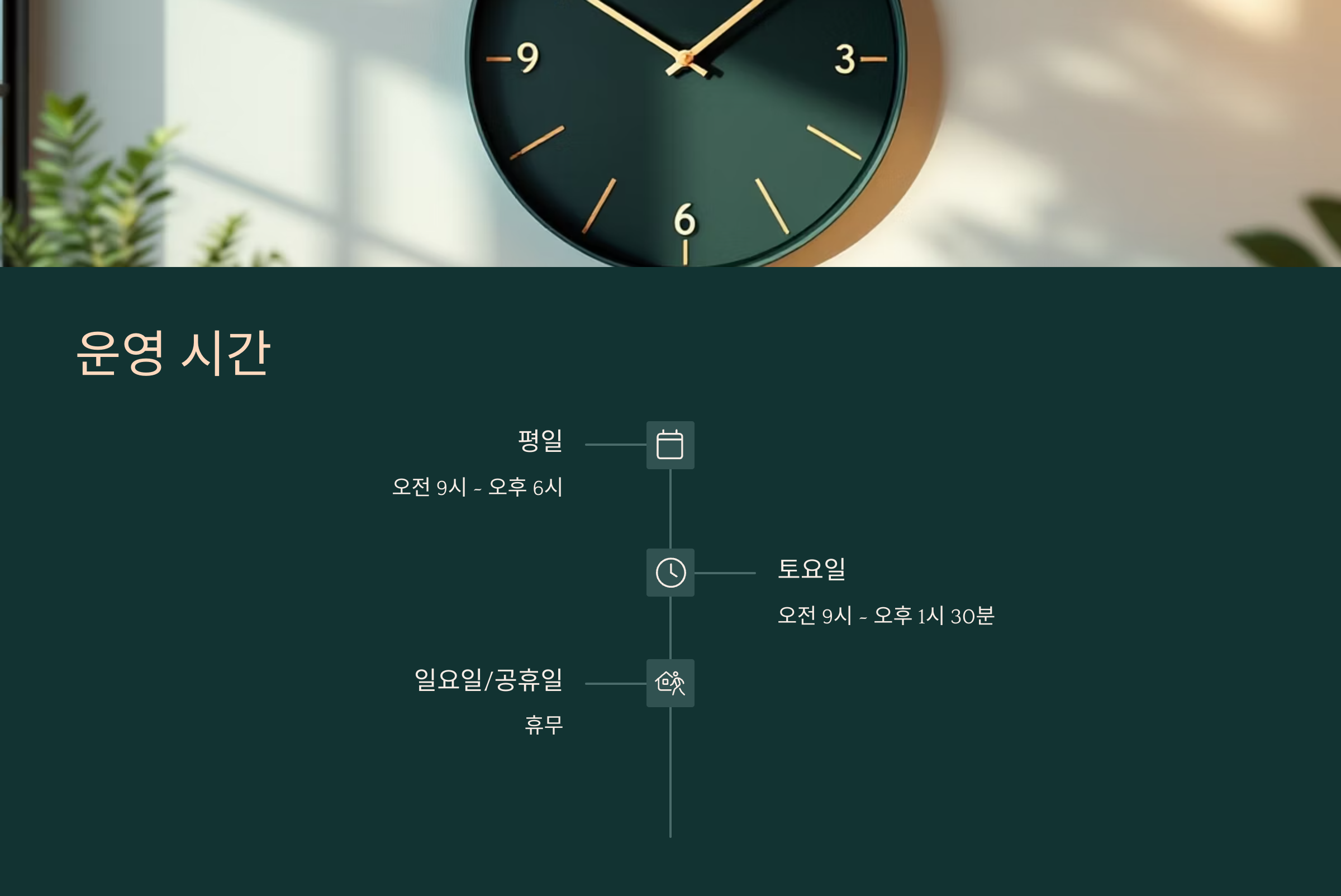 - 평일(월~금): 오전 9시 ~ 오후 6시
