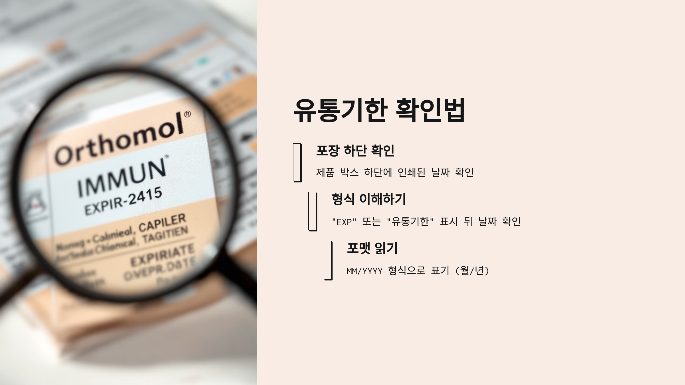 💡 TIP: 유통기한은 박스 옆면에 'EXP' 또는 'MHD'로 표기되어 있으니 병만 보고 판단하시면 안 돼요!