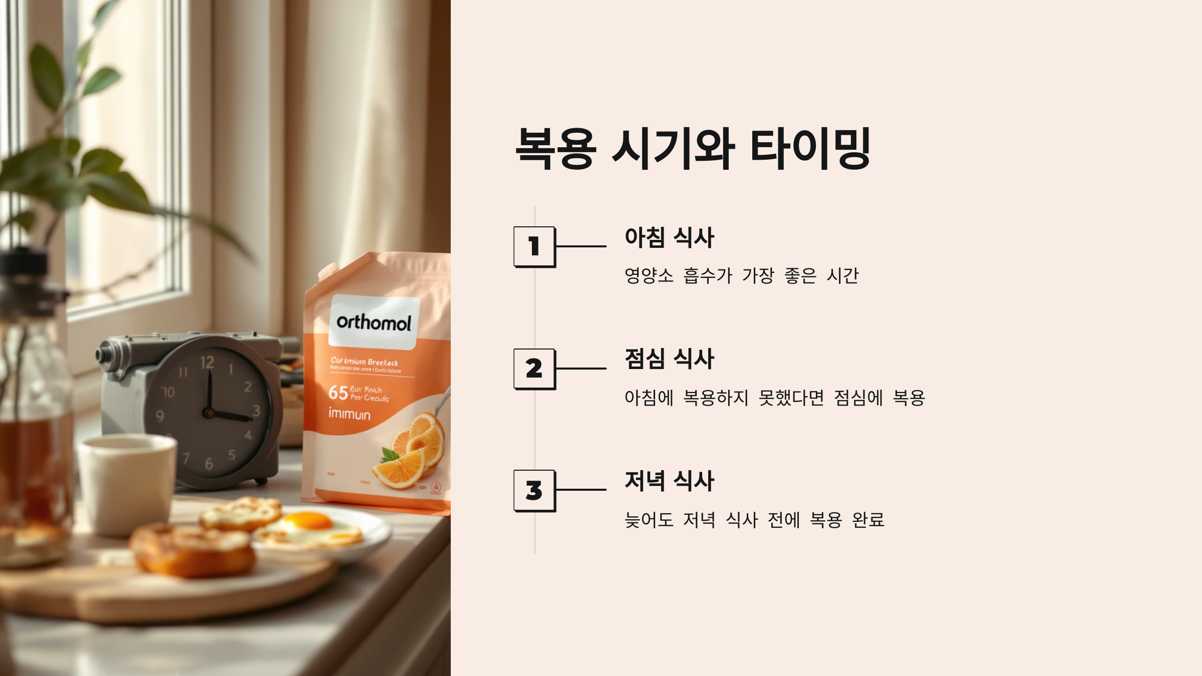 오쏘몰 이뮨의 복용 시점은 꽤 중요해요.