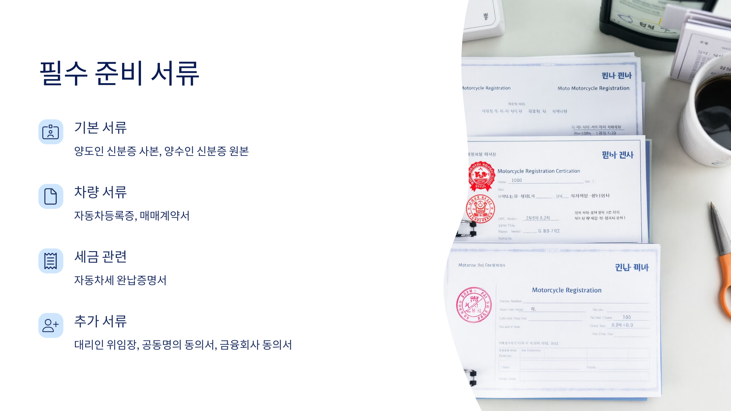 특히 서류 누락 없이, 기한 내 명의이전 완료, 보험 가입까지 잊지 마세요!