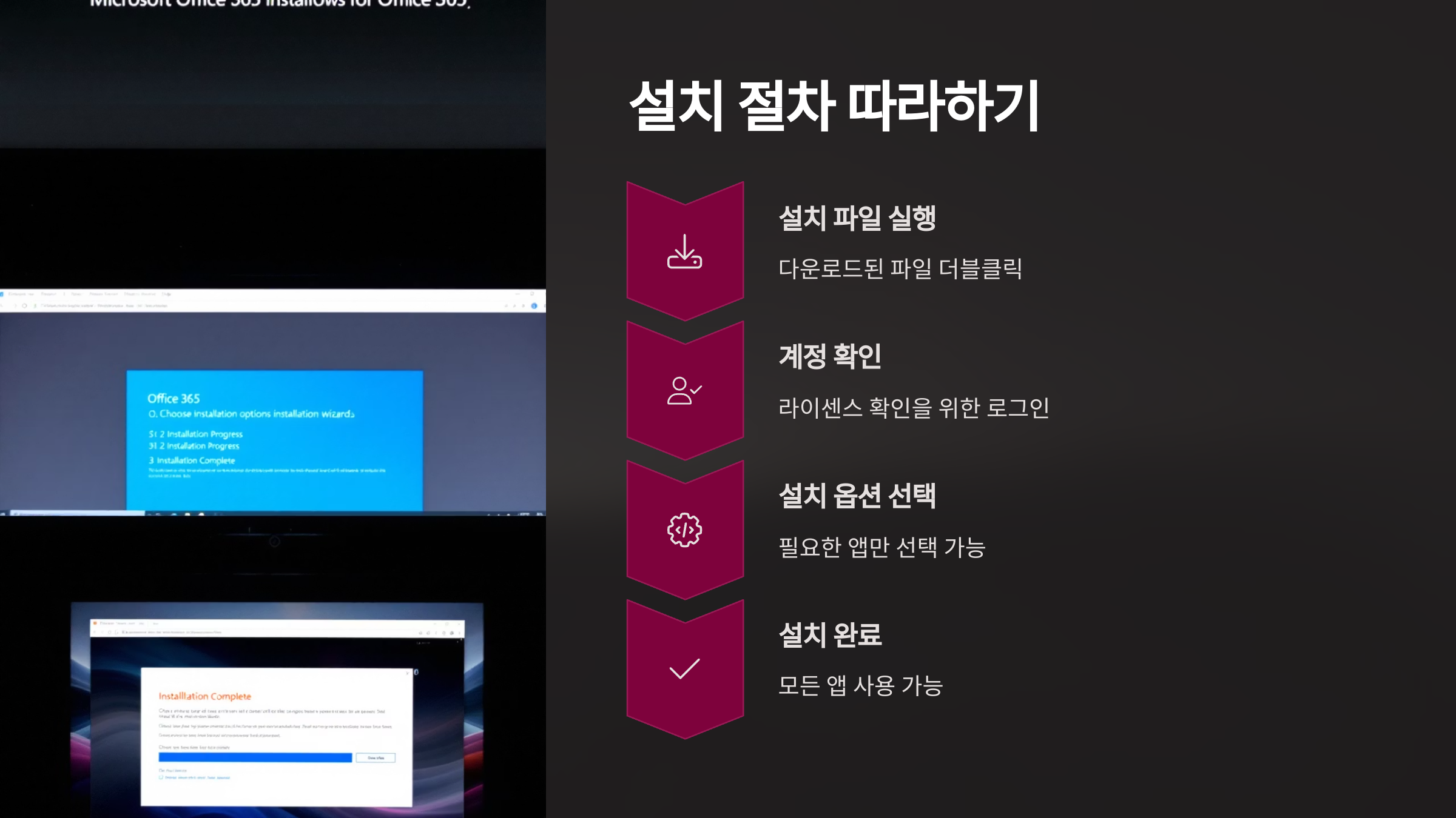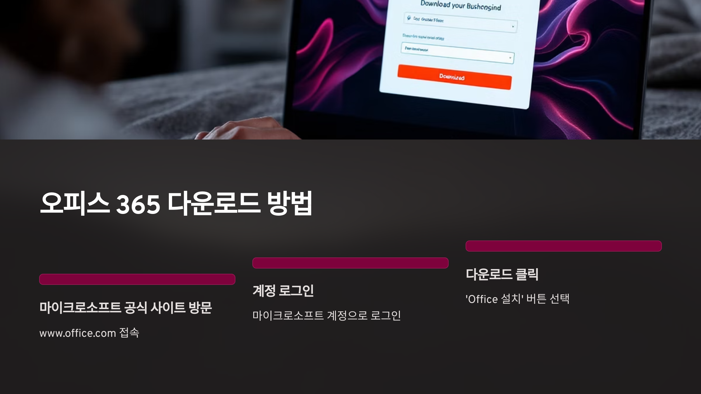 오피스 365는 온라인을 통해 설치 파일을 다운로드해야 하므로, 안정적인 인터넷 연결이 필수입니다.