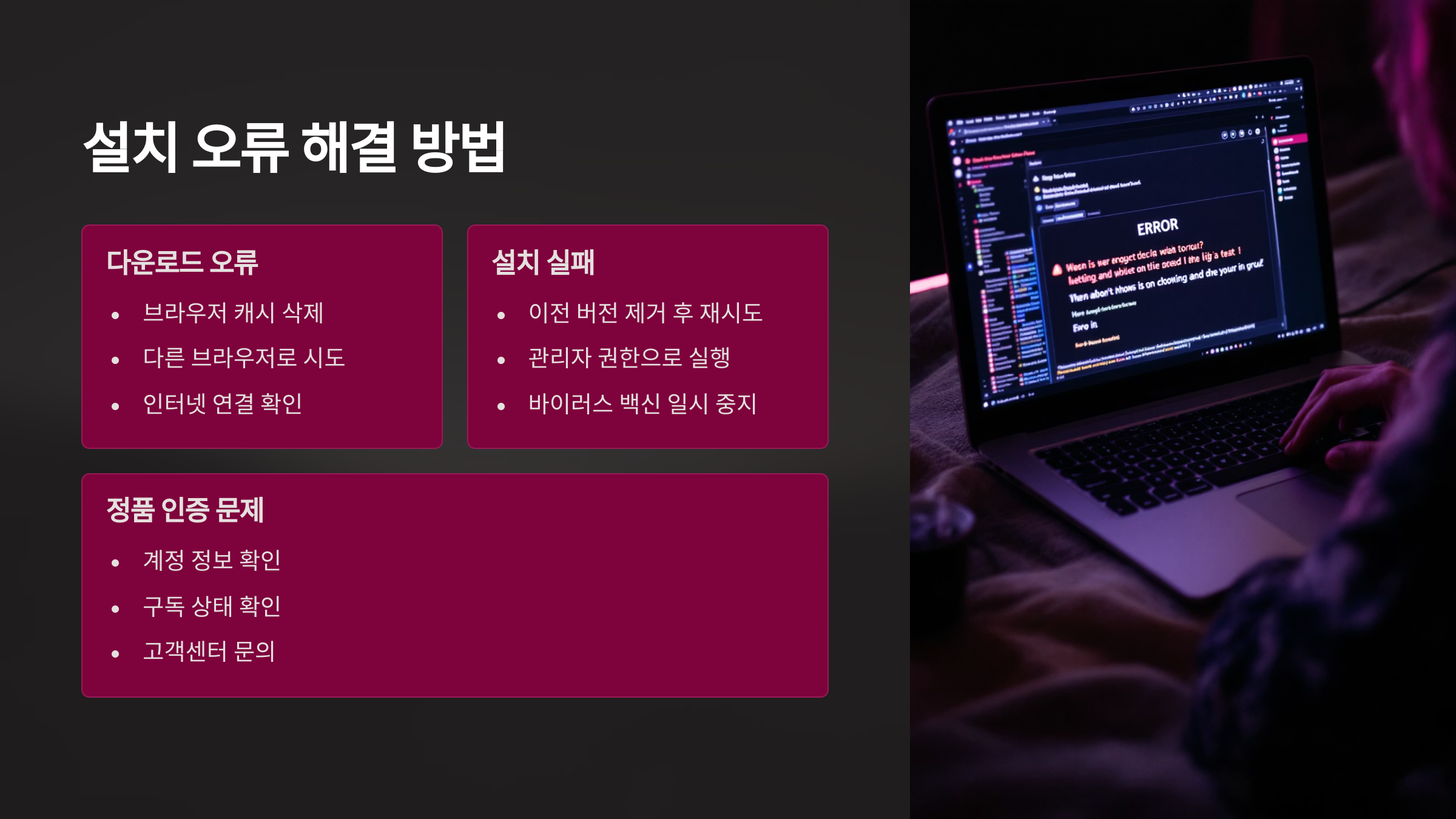 혹시 설치 과정 중에 오류가 발생했나요? 괜찮아요!