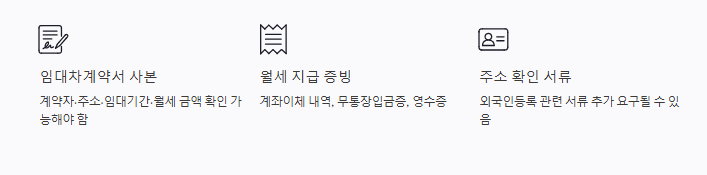 외국인 월세환급금 신청방법에서 실제 승인 여부를 좌우하는 것은 서류입니다. 기본적으로 아래 자료를 준비하면 됩니다.