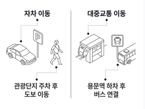 용문사 템플스테이는 가는 길까지 생각해야 편합니다. 자차라면 관광단지 주차장에 세운 뒤 일정 구간을 걸어 올라가야 하고, 대중교통은 용문역 하차 후 버스로 이어지는 흐름을 생각하면 됩니다. 겉보기엔 서울 근교지만, 현장 분위기는 꽤 산사답기 때문에 복장과 짐이 중요합니다.