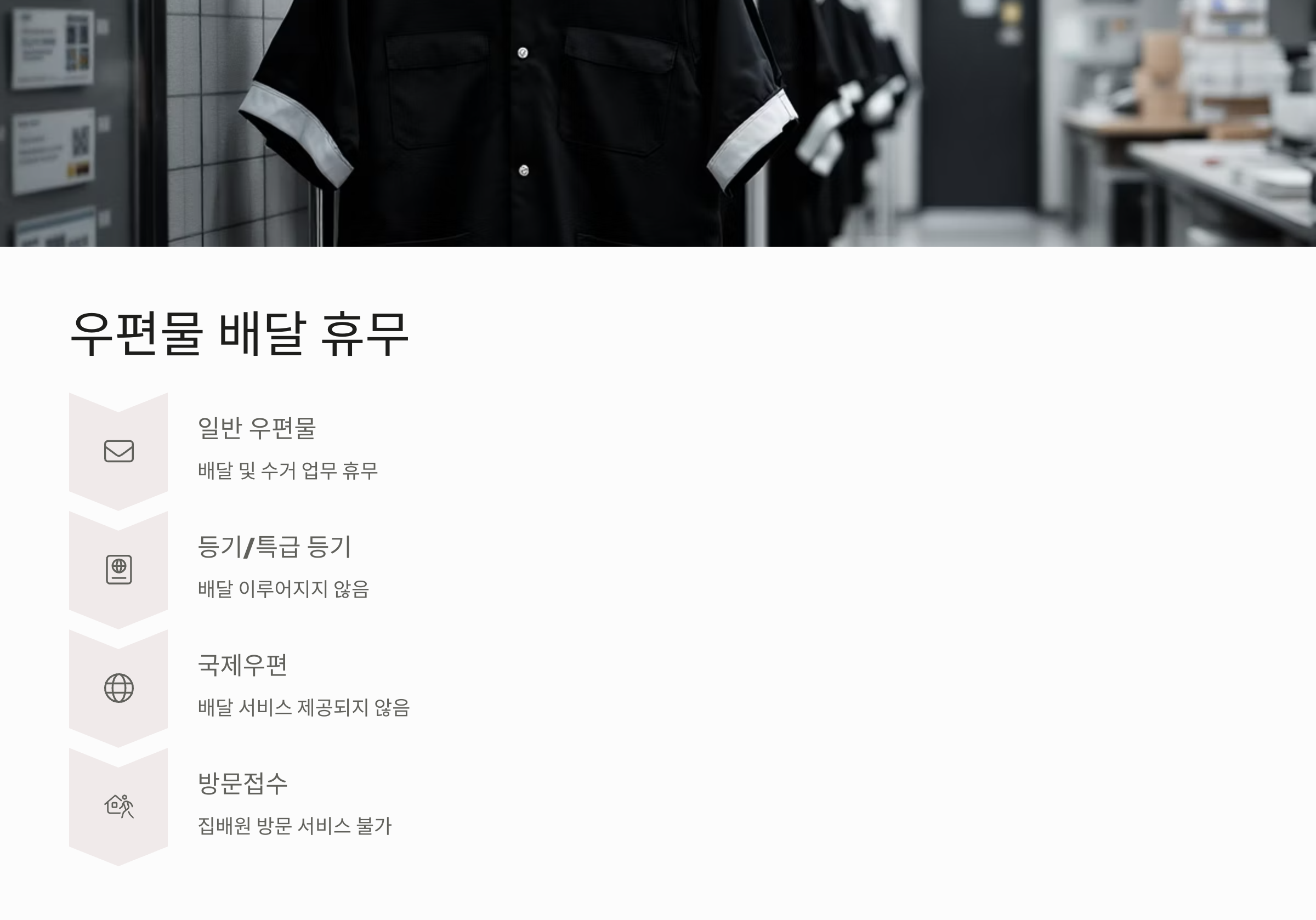 또한 이 날은 집배원이 방문하는 우편물 방문접수 서비스도 제공되지 않습니다.