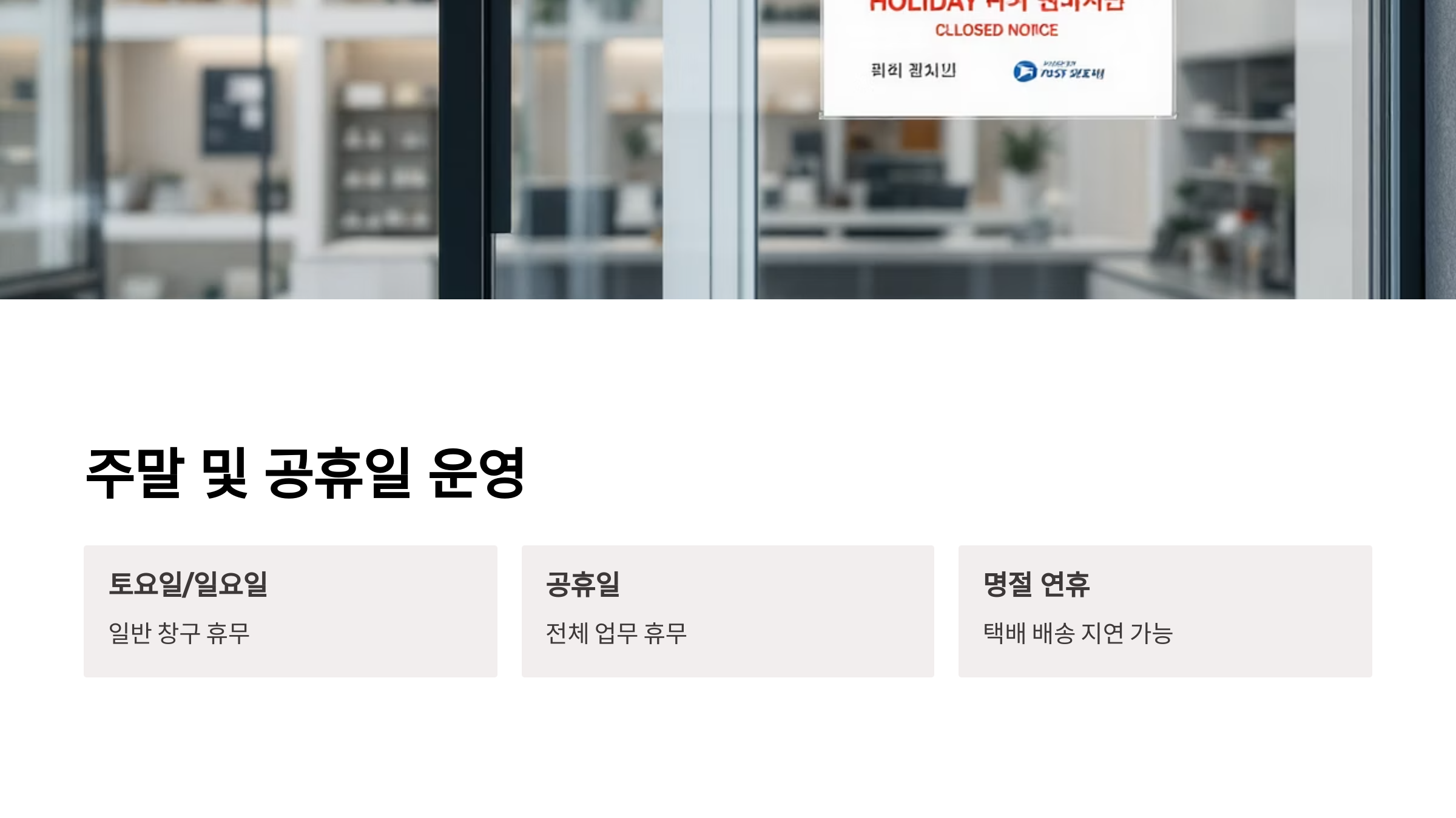 🔖 체크포인트 3: 특별 운영시간(명절, 국경일 등) 공지사항 확인