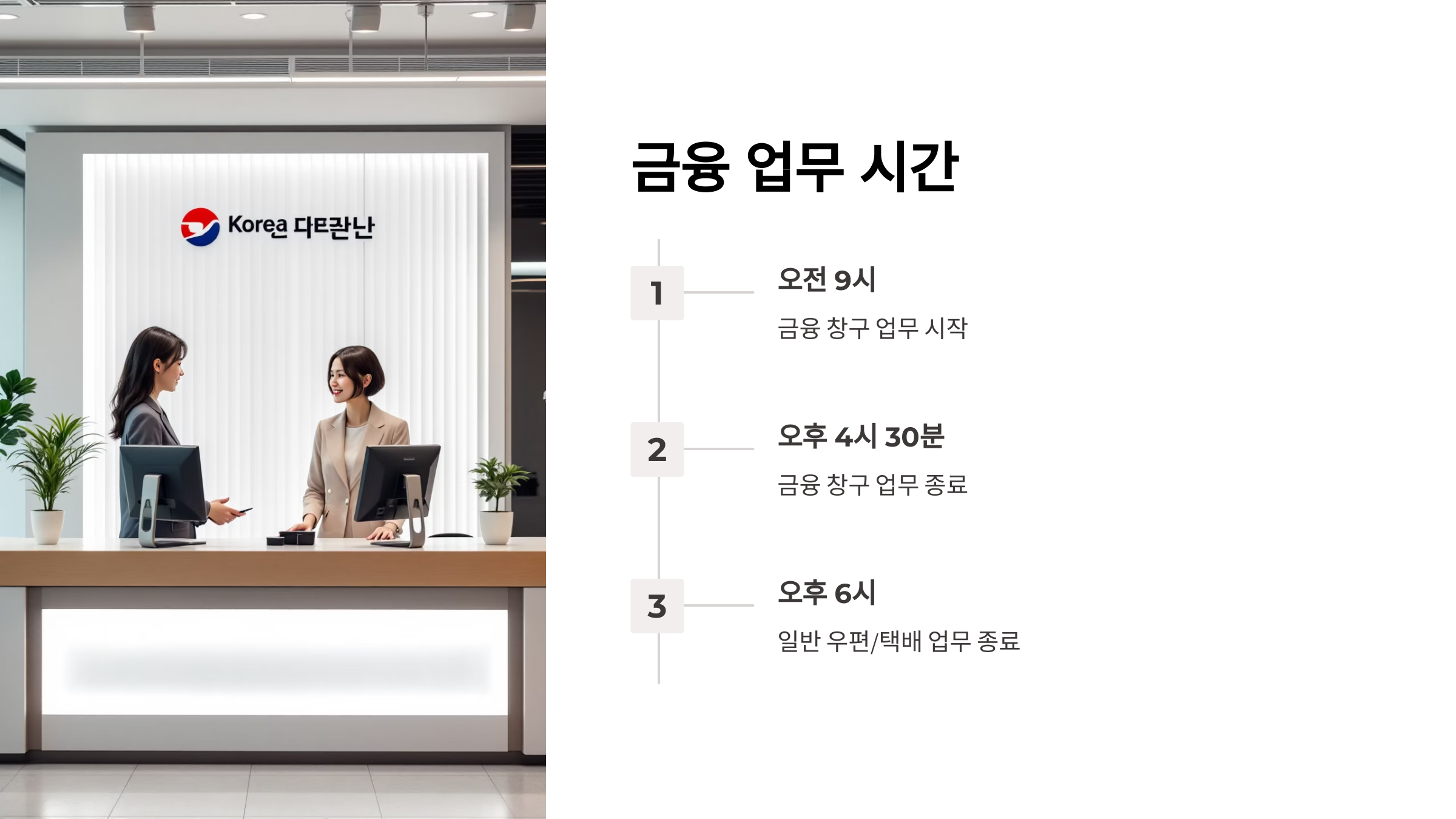"택배는 늦게까지 접수 가능한데, 금융은 왜 이렇게 일찍 닫을까?" 궁금하셨던 분들도 많을 텐데요. 금융 관련 업무는 은행법과 금융 규정에 따라 조기 마감을 해야 하기에, 우체국도 이를 따르고 있는 거예요. 😉
