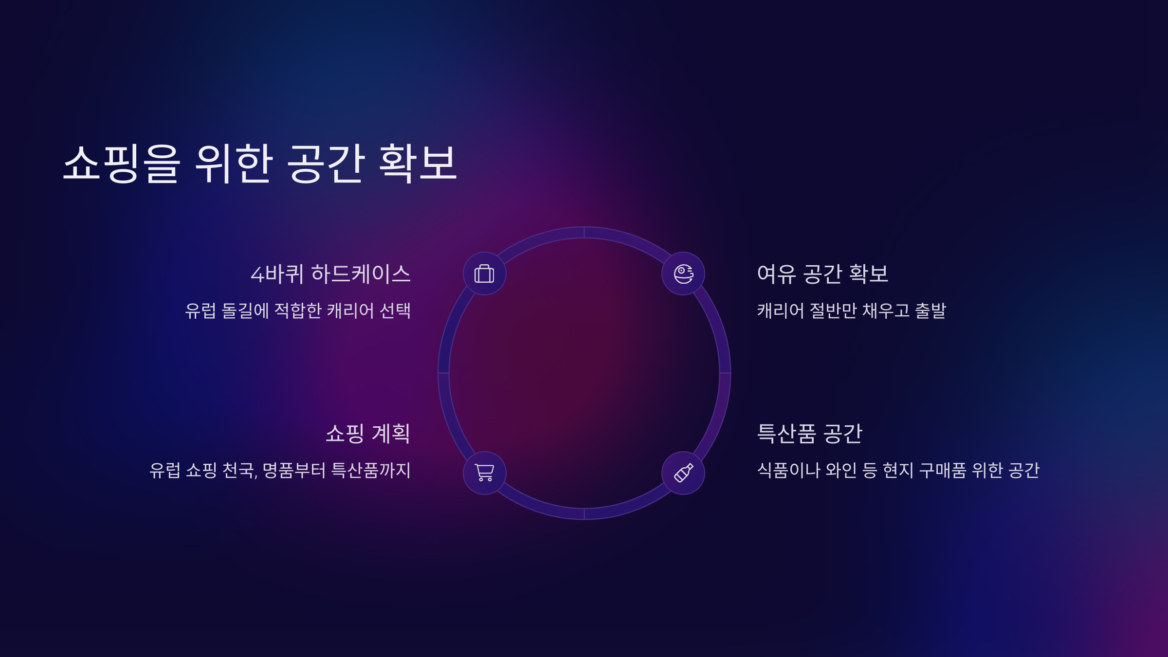 특히 포장된 식품이나 와인 등 현지 특산품을 가져올 계획이라면 여유 공간은 필수랍니다.