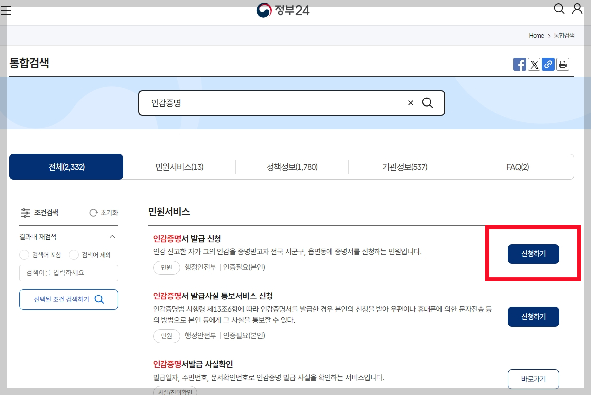 정부24에 회원가입이 되어있으면 더 간편하답니다.