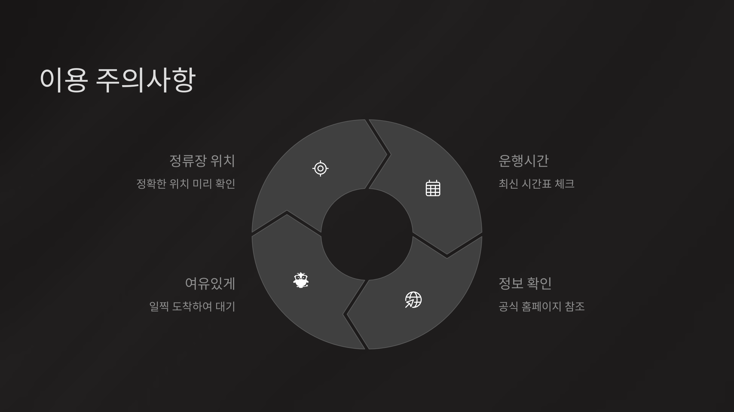 🔖 정류장 위치 확인: 각 정류장의 정확한 위치를 미리 알아두면 당황하지 않아요.