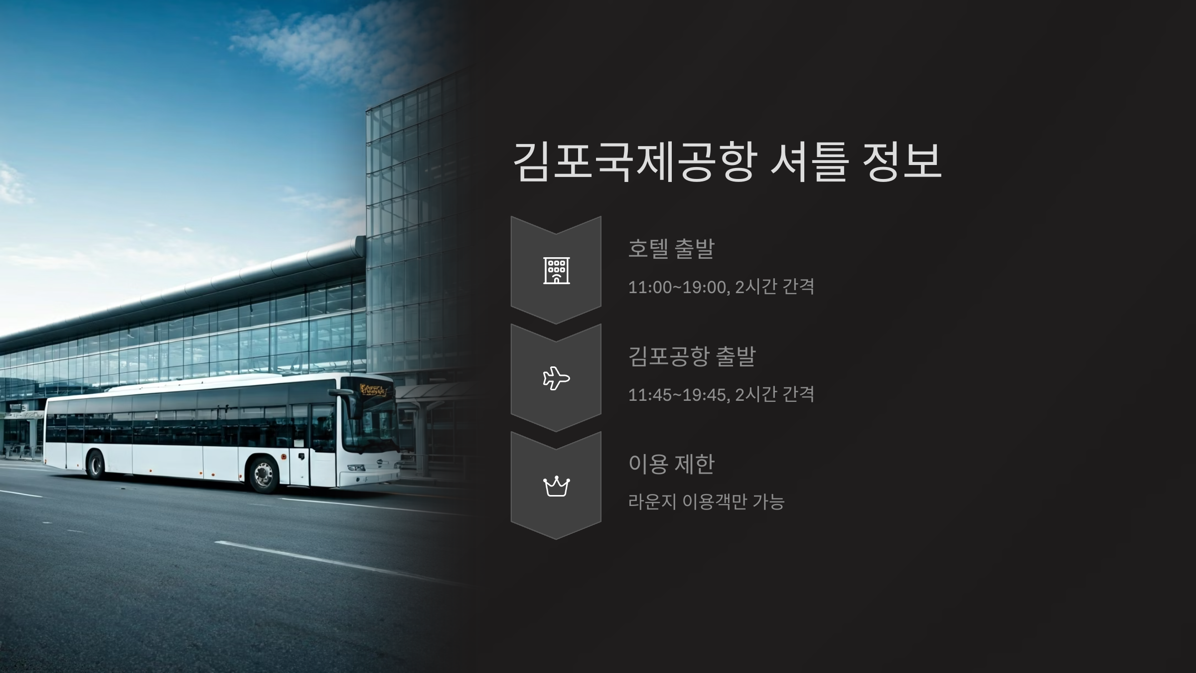 라운지 패키지를 예약하신 분이라면, 김포 셔틀도 아주 편리하게 이용할 수 있어요.