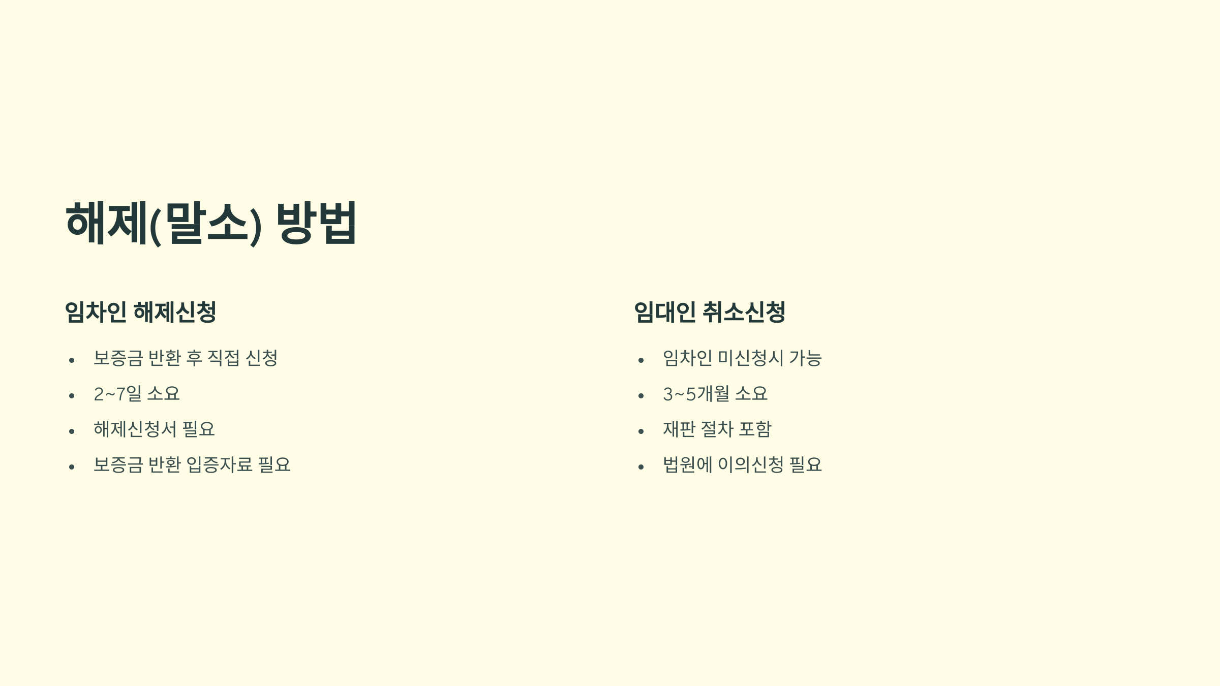말소는 크게 임차인이 직접 해제신청하는 경우와 임대인이 취소신청하는 경우로 나뉘어요.