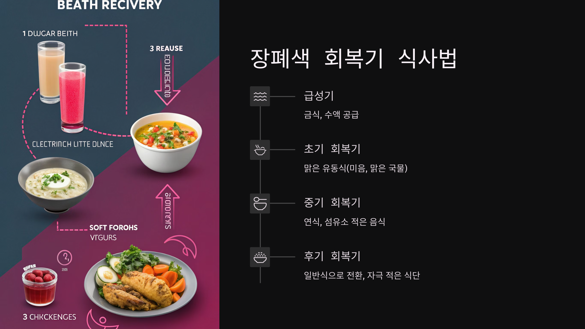 장폐색 이후 회복기에는 점진적인 식사 전환이 중요해요.