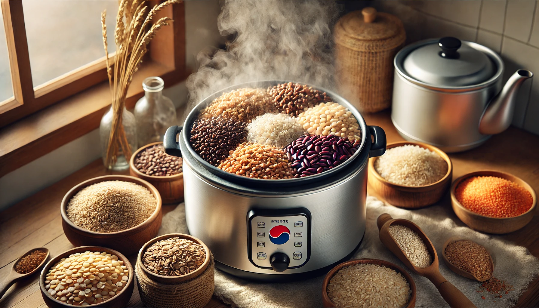 기본 재료: 현미 1컵, 귀리 1/3컵, 렌틸콩 1/3컵, 강낭콩 1/3컵