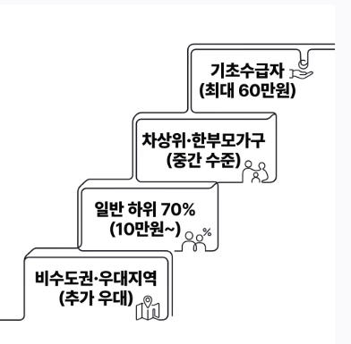 | 핵심 정보 | 소득 하위 70% 및 취약계층 중심 차등 지급, 1인당 10만~60만 원 수준 |