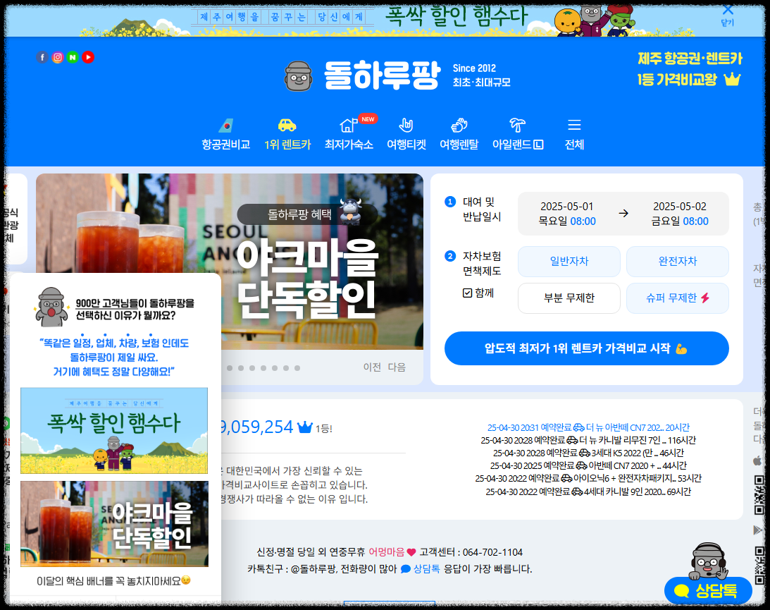 1. 제주더렌트카 - 실시간 최저가 비교 강자