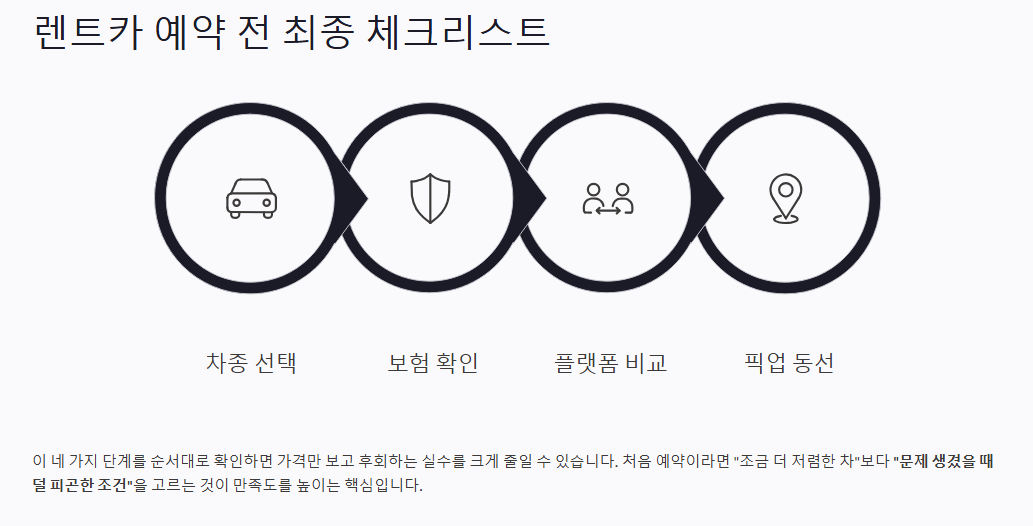 한 곳만 보기보다 2~3곳에서 같은 날짜·같은 차급·같은 보험 조건으로 비교해보시는 것이 좋습니다.