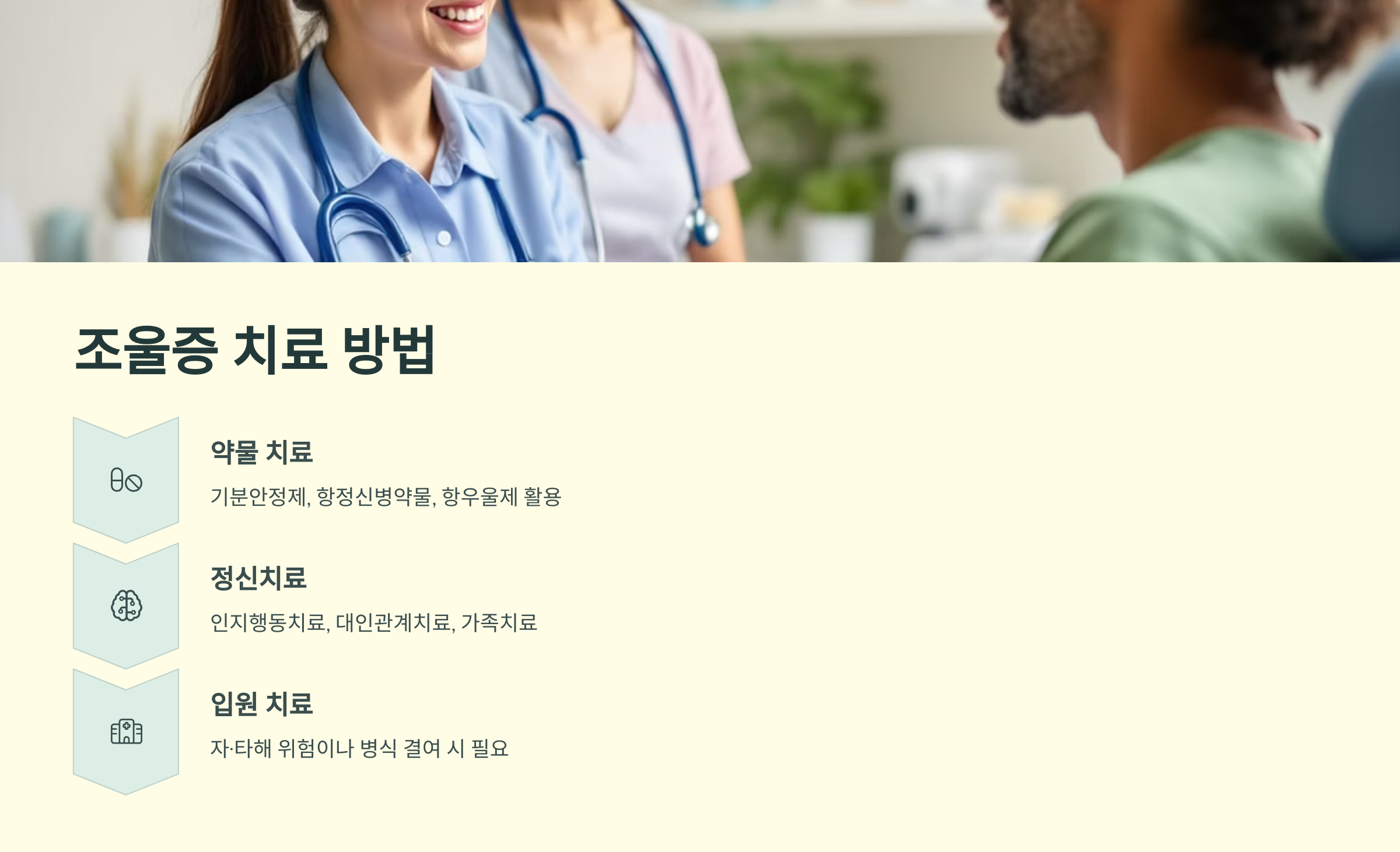 이번 글에서는 조울증의 주요 증상, 치료방법, 재발 위험, 그리고 우울증·조현병과의 차이점까지 한 번에 정리해드릴게요 😊