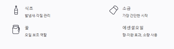 4. 식초 + 레몬 계열 오일 : 산뜻한 마무리를 원하는 경우에 자주 언급됩니다.