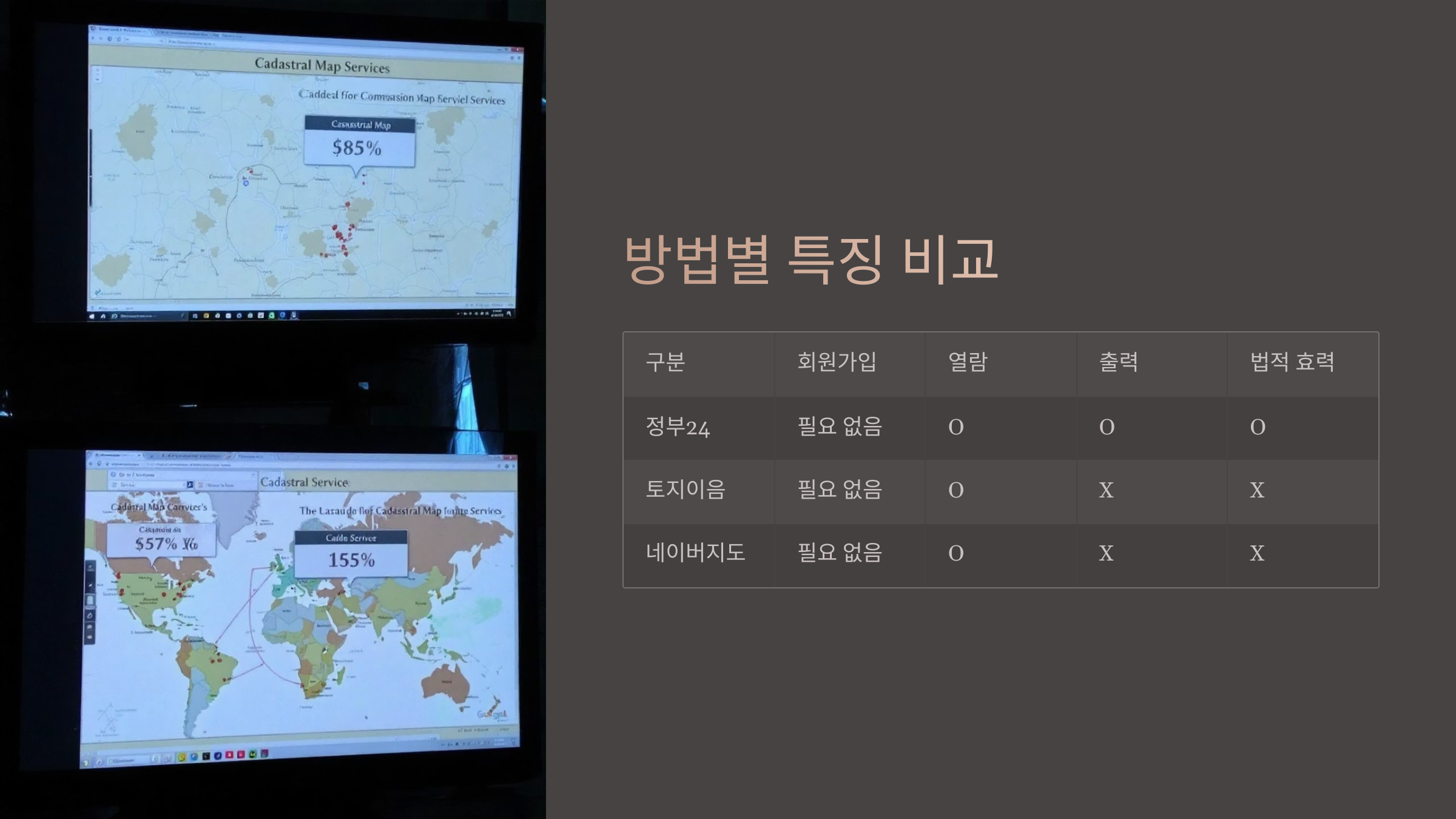 지금까지 소개한 세 가지 지적도 확인 방법을 표로 비교해드릴게요.