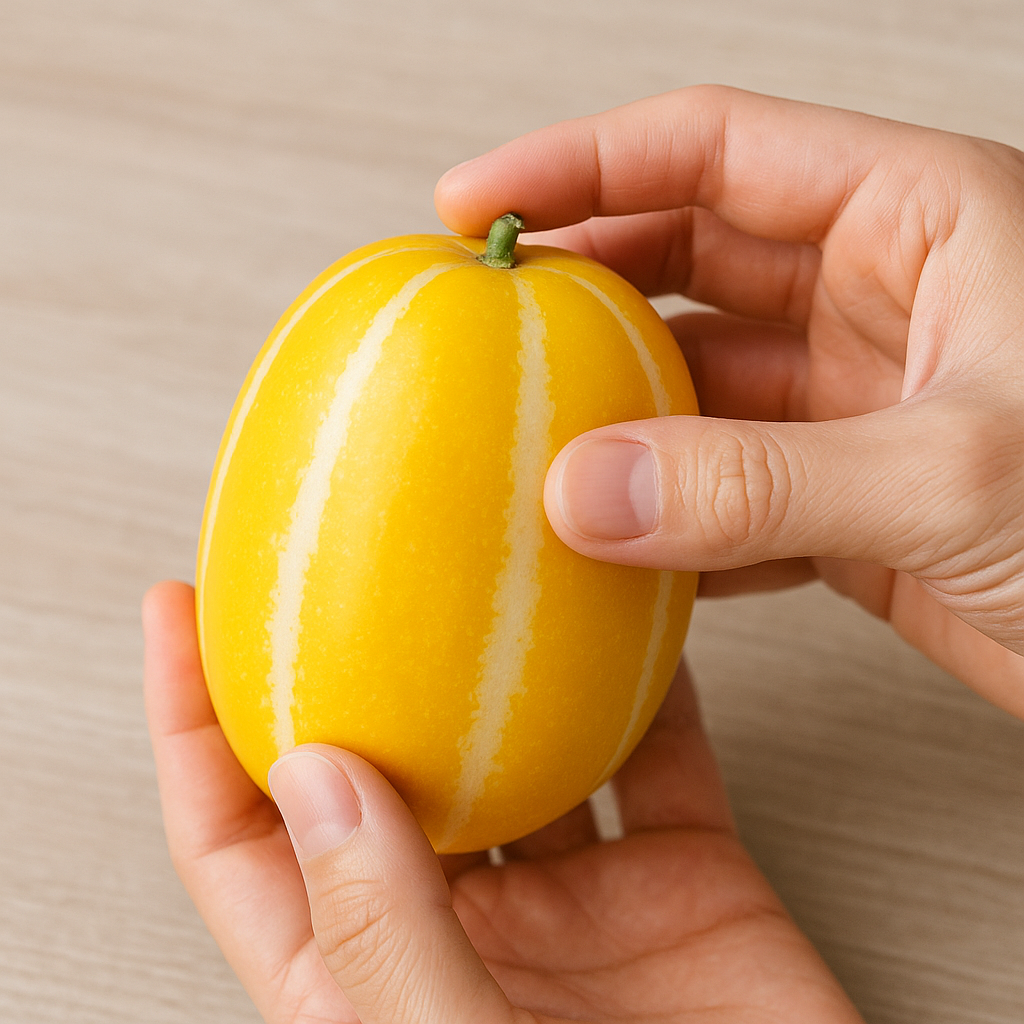 손바닥으로 가볍게 눌러봤을 때, 탄탄하고 단단한 느낌이 든다면 신선한 참외입니다.