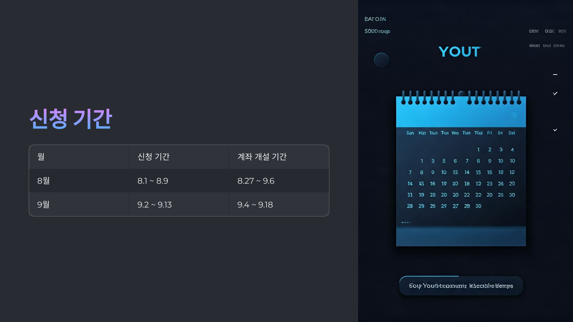 | 월 | 신청 기간 | 계좌 개설 기간 |