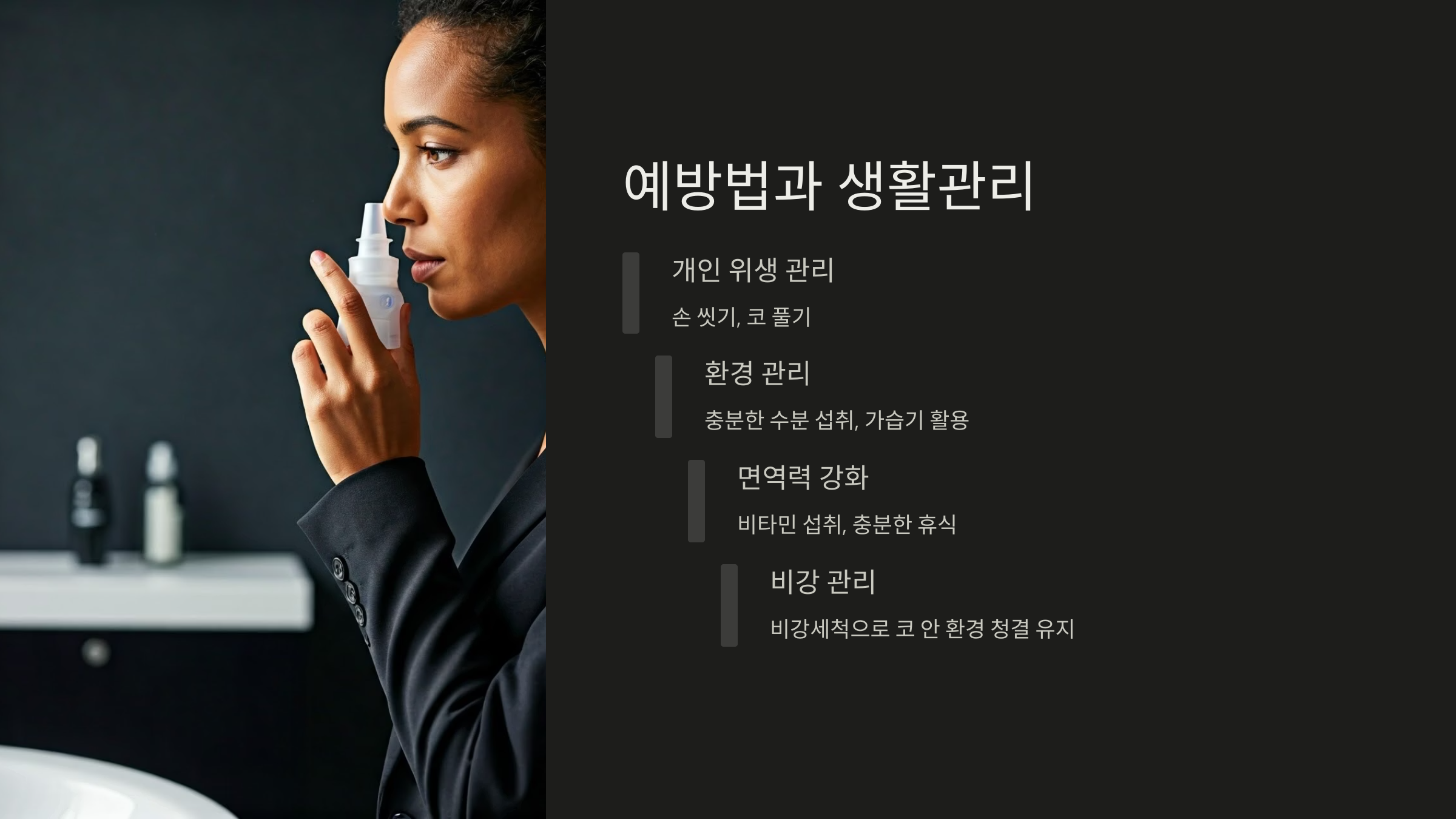 생리식염수를 이용해 코를 세척하면 점액 제거와 염증 완화에 효과적입니다.