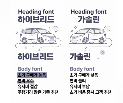 주행거리가 많은 가정이라면 하이브리드의 경제성이 더 분명하게 드러날 수 있어요.