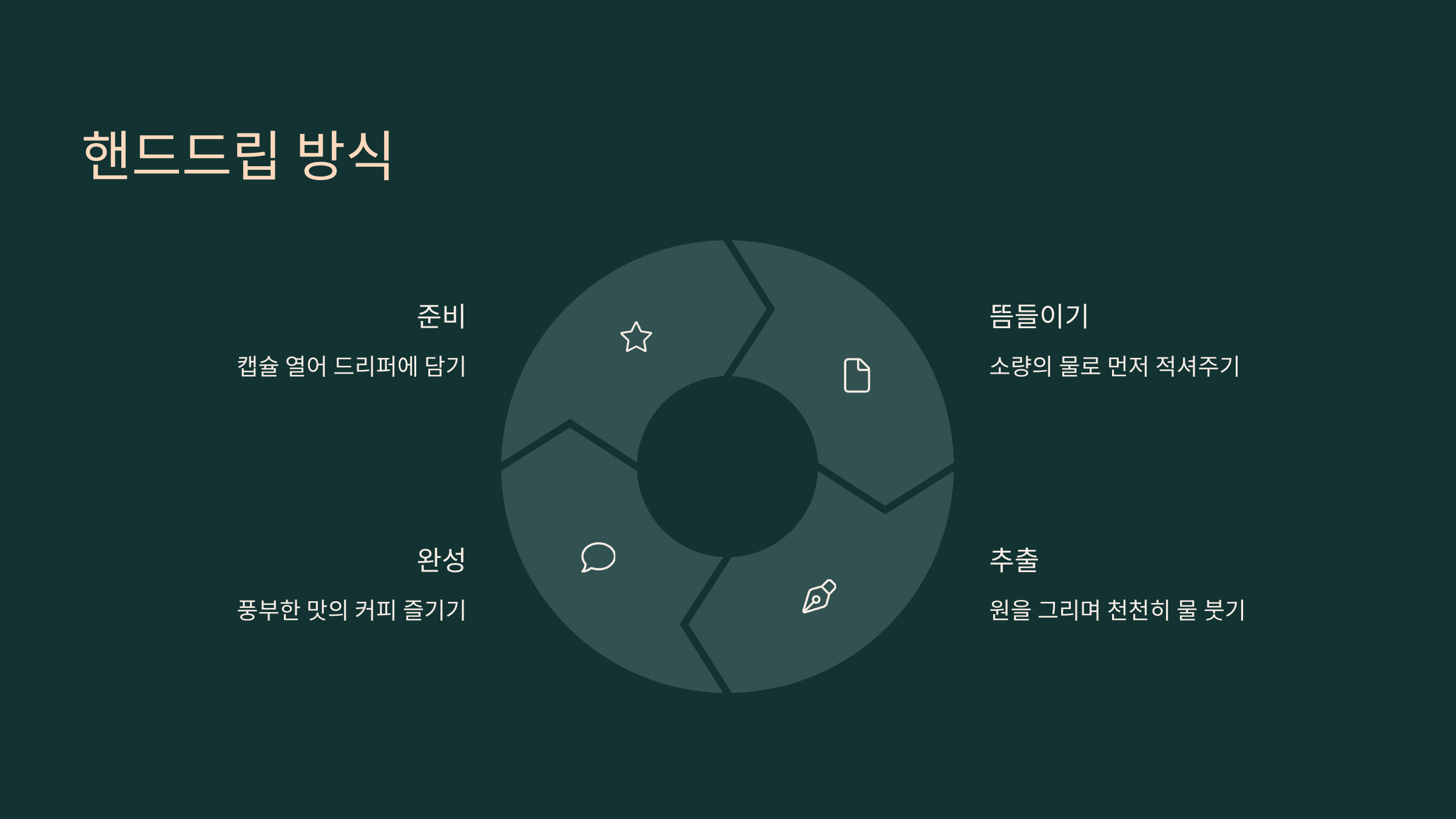 물을 한 번에 다 붓지 말고, 여러 번 나눠서 부어야 커피 맛이 더 풍부하게 나요.