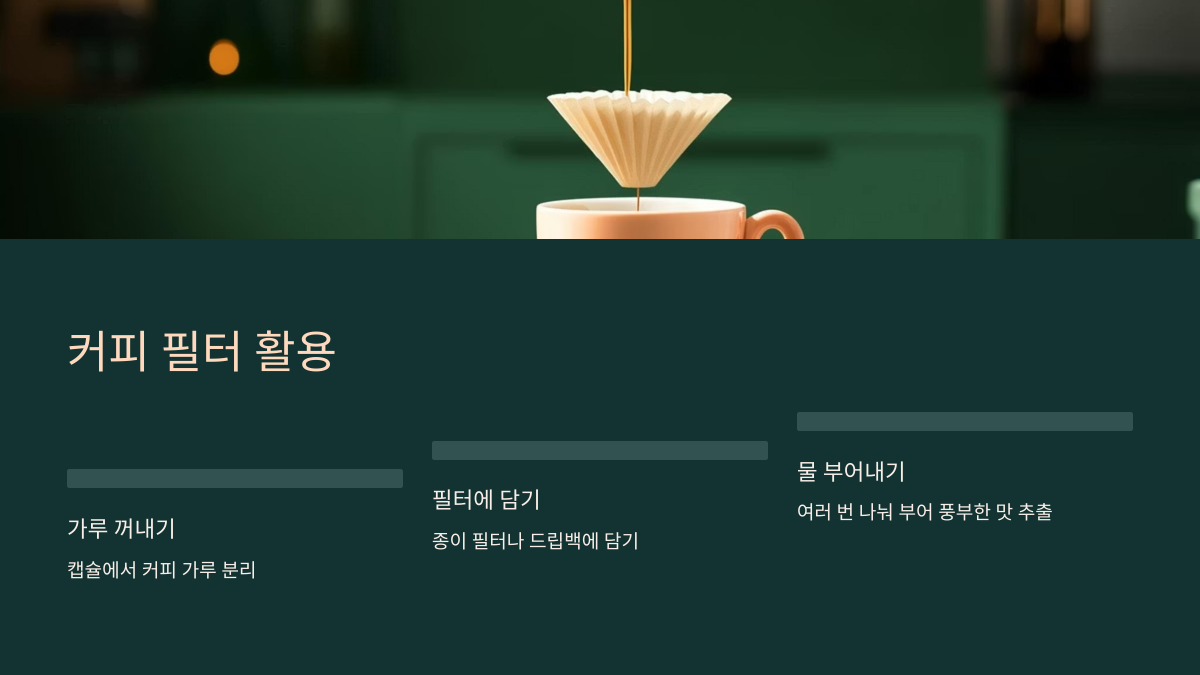 먼저, 캡슐을 열어 커피 가루를 드리퍼에 담습니다. 이때 드립 필터를 함께 사용하면 더 깔끔해요.