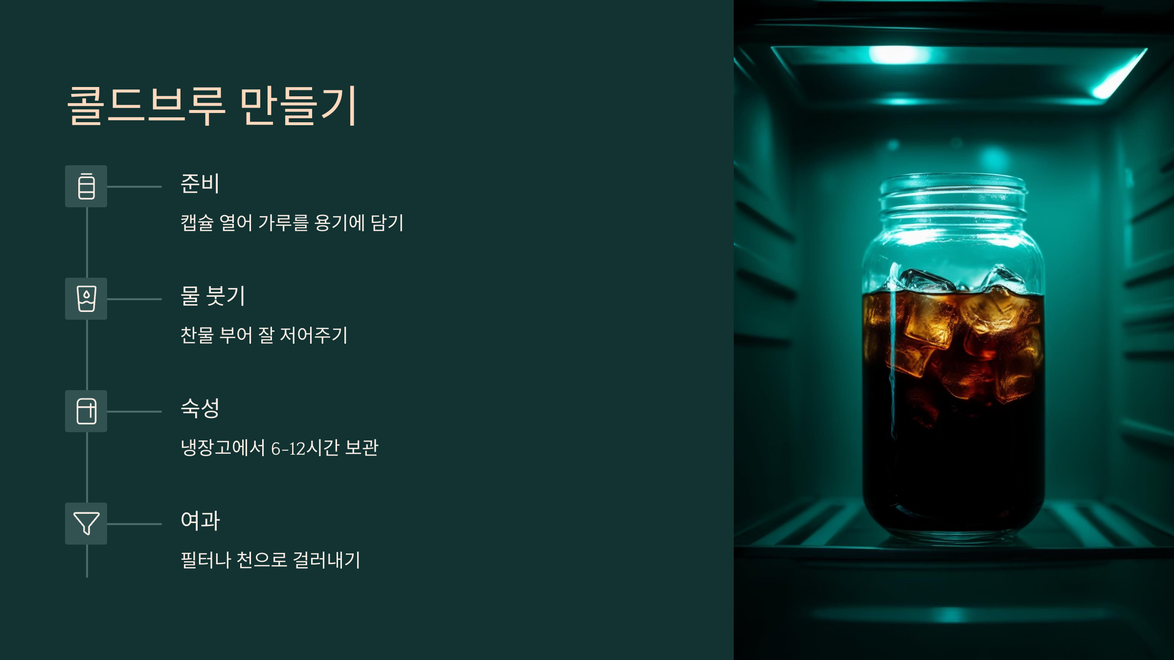 더운 날엔 콜드브루가 최고죠! 이 방법은 밤새 우려놓기만 하면 되니까 정말 간편해요.