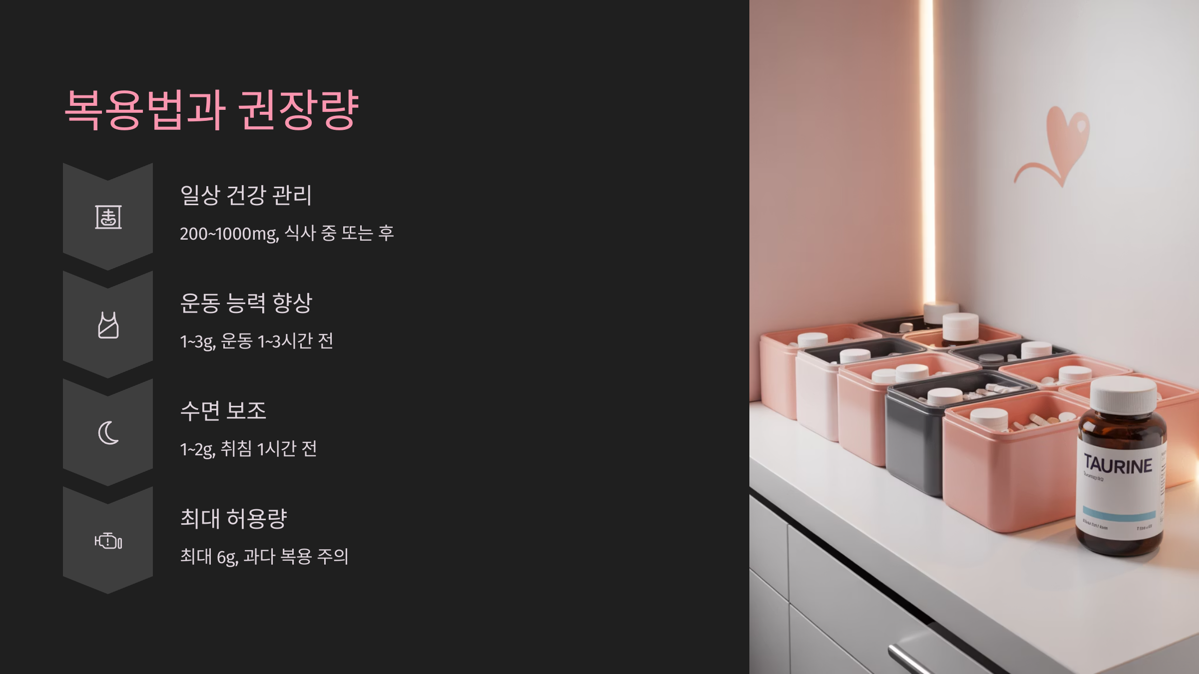 ⚠️ 주의: 타우린도 ‘과유불급’입니다! 하루 권장량을 지켜주세요.