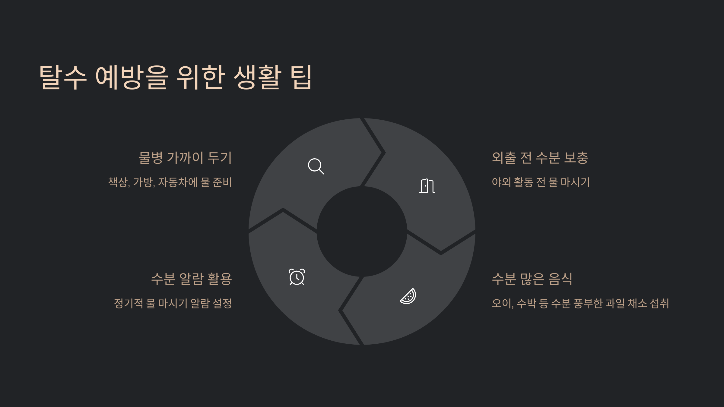 특히 여름철, 운동 전후, 노약자나 어린이를 돌보는 경우라면 아래의 팁들을 생활 속에서 실천해보세요.