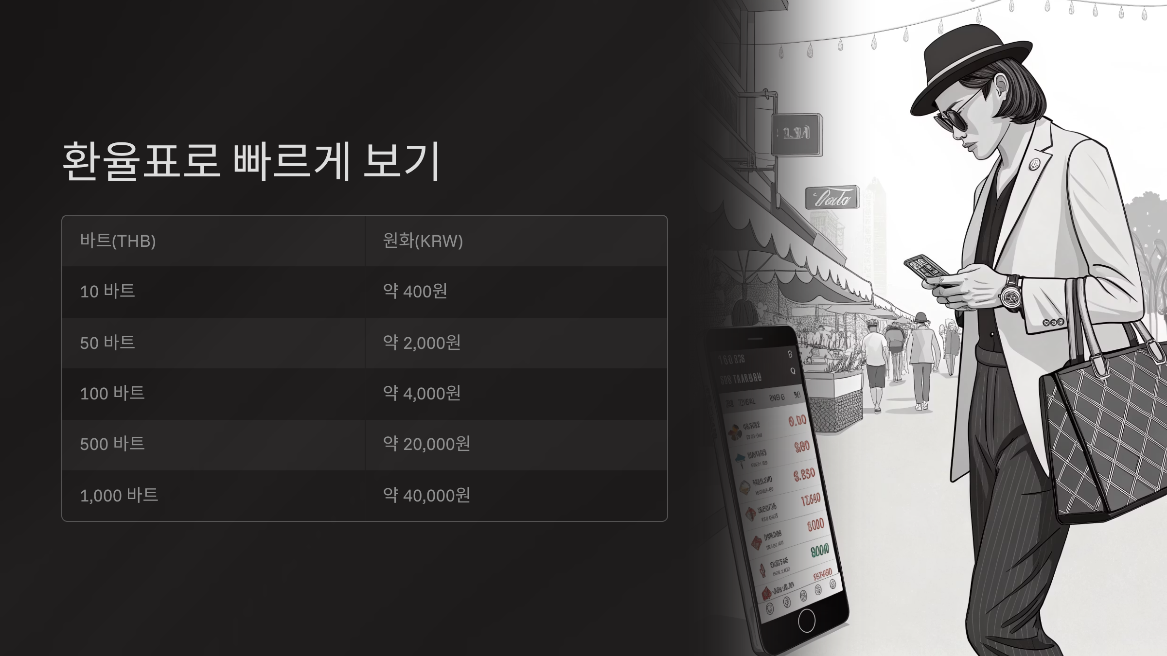 특히 태국처럼 자주 가는 나라인 경우, 빠르고 쉽게 계산할 수 있는 꿀팁이 절실하죠.