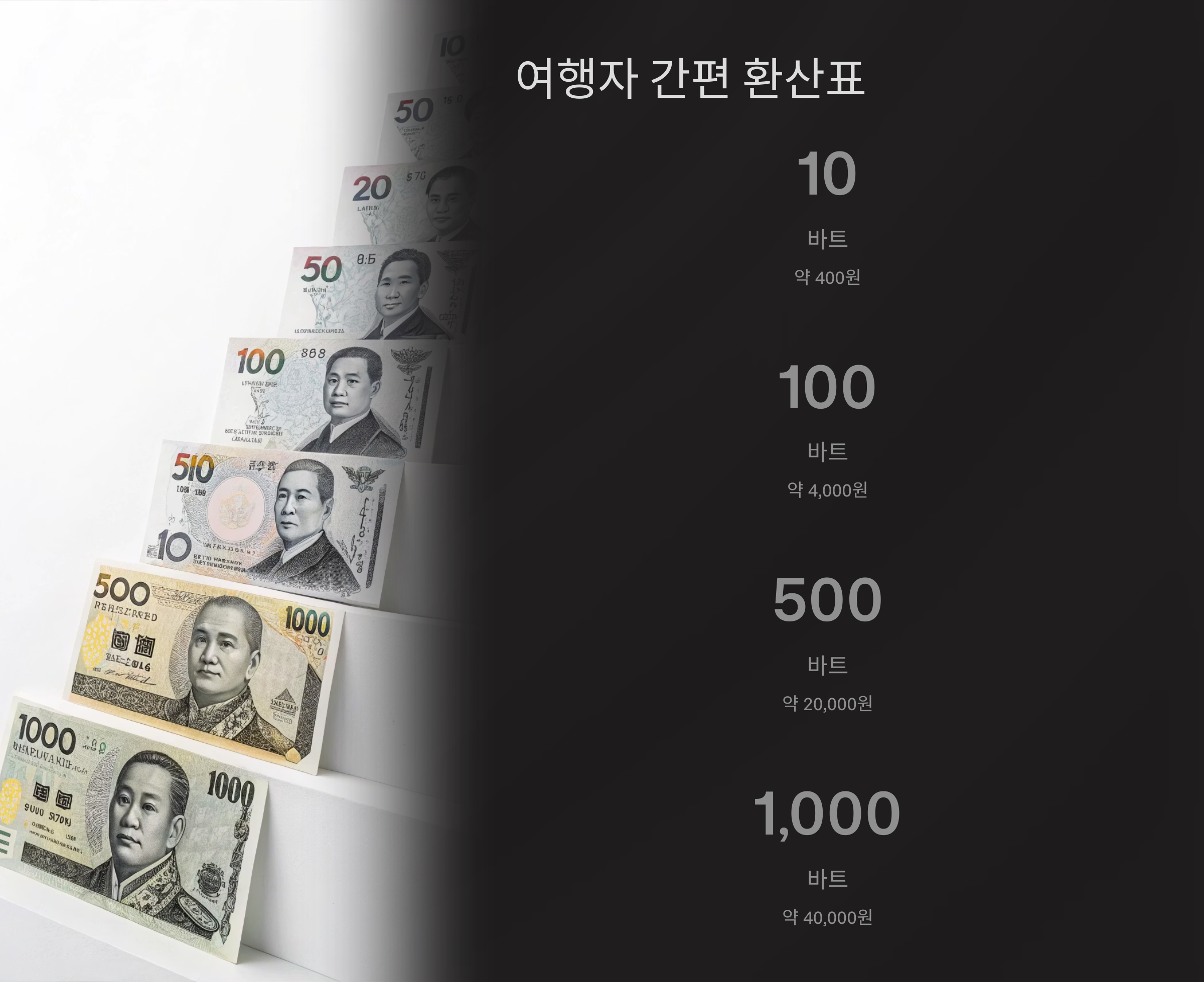 🔖 체크포인트: 혹시 계산이 어렵다면 '바트 가격 × 40 = 원화'만 기억하세요!
