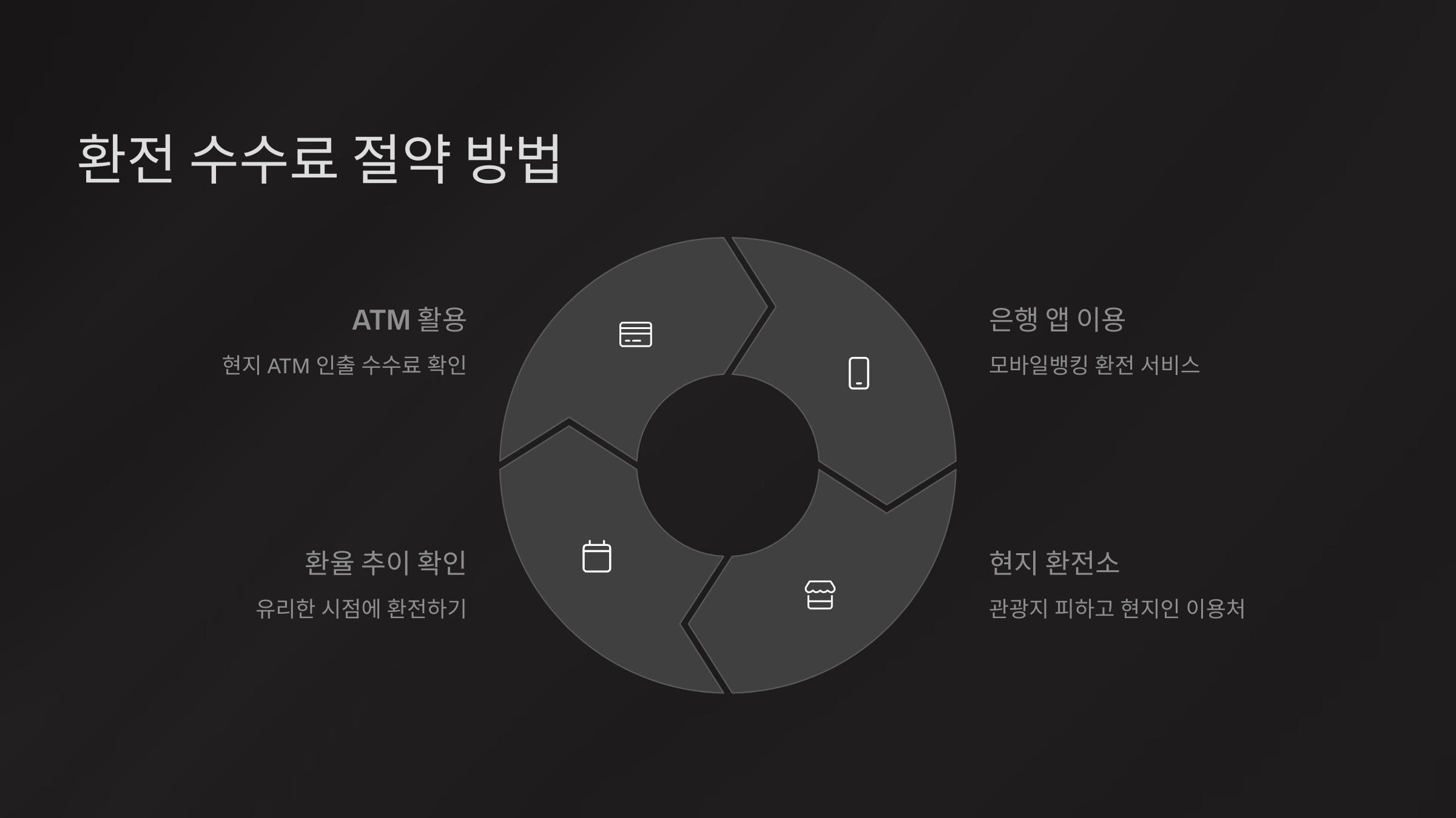 💡 TIP: 환전 수수료가 적은 ATM이나 은행 앱 활용도 고려해보세요.