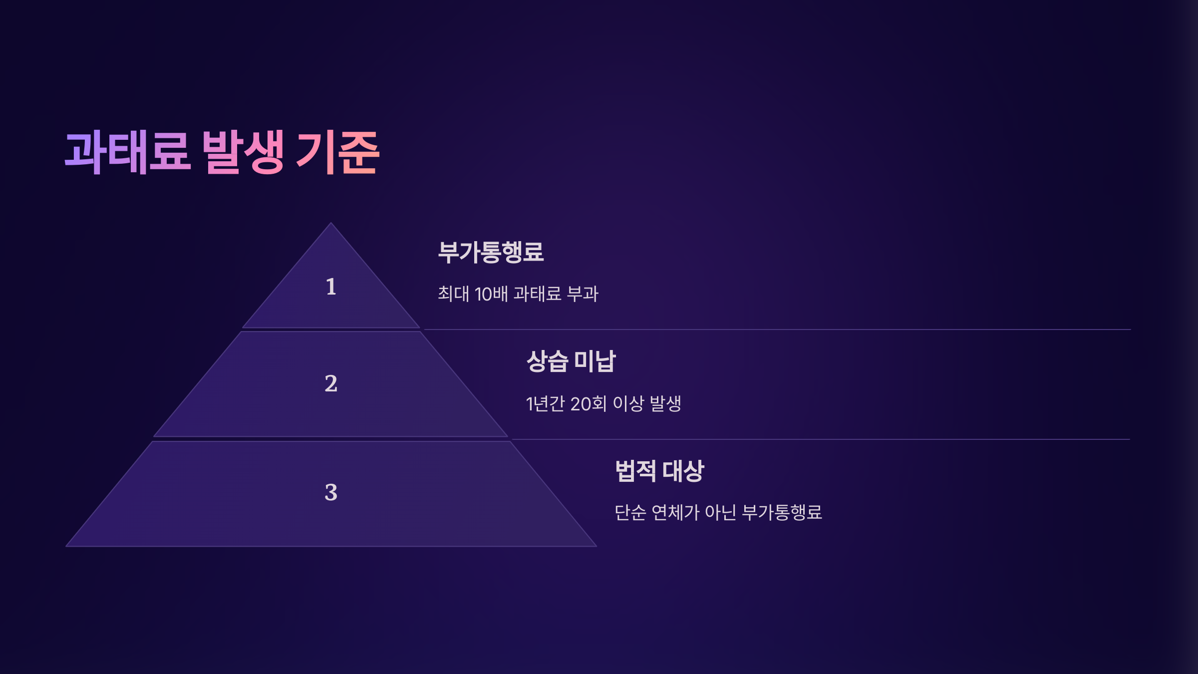 그리고 중요한 포인트 하나! 만약 1년 동안 20회 이상 미납이 발생하면, 무려 10배의 과태료가 발생할 수 있어요.