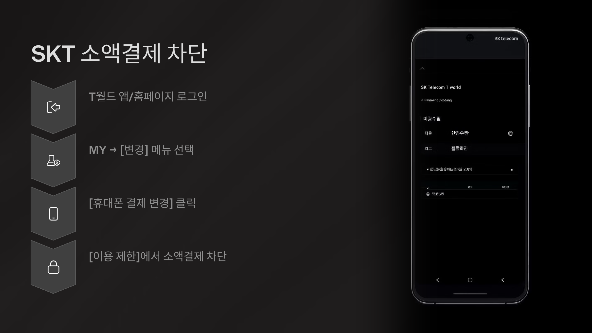 - [휴대폰 소액결제 내역] 항목에서 차단 설정